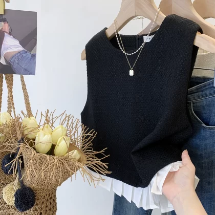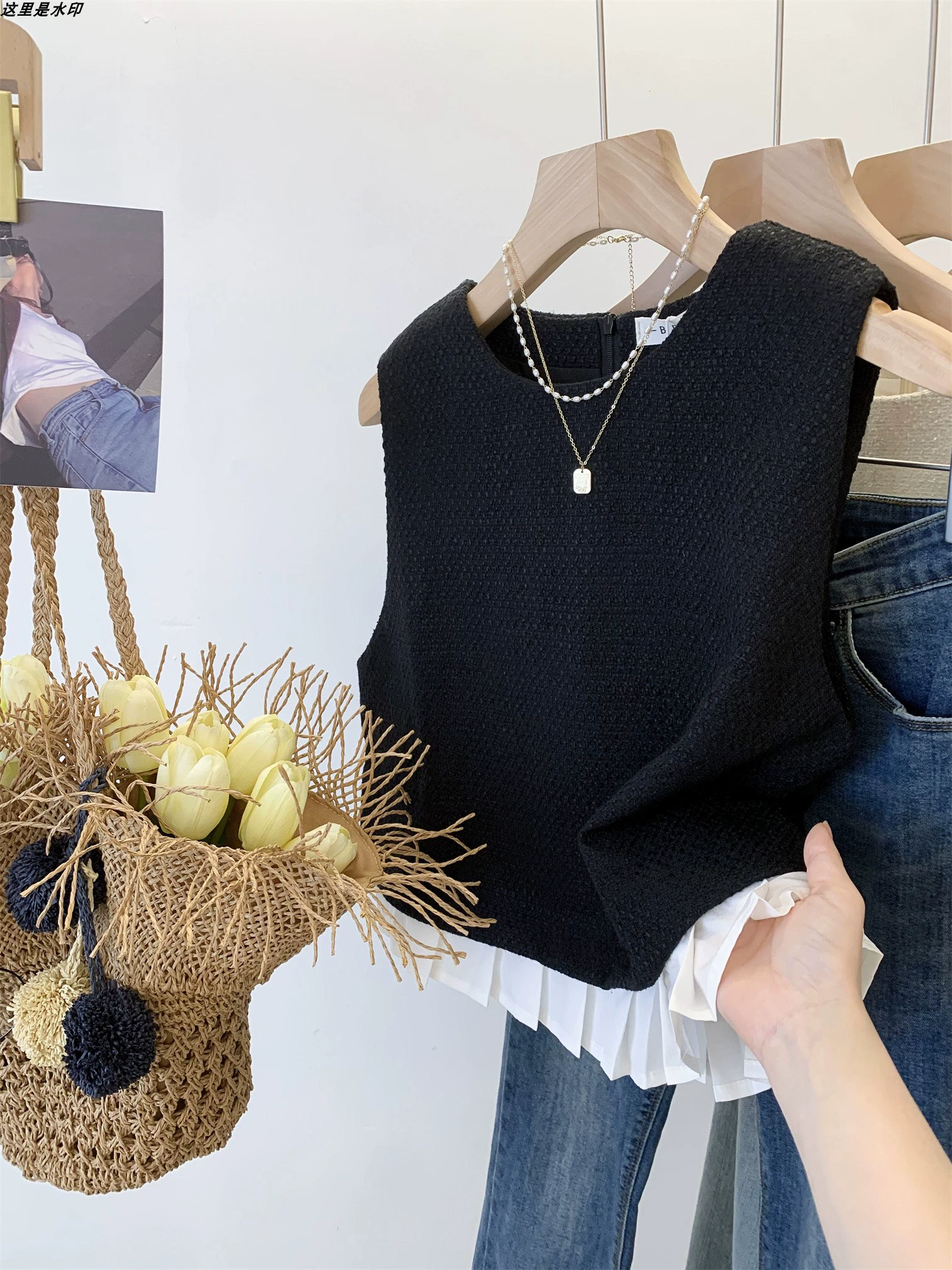 | nameOriginal | European stitched pleated fake two-piece vest sleeveless waistcoat |