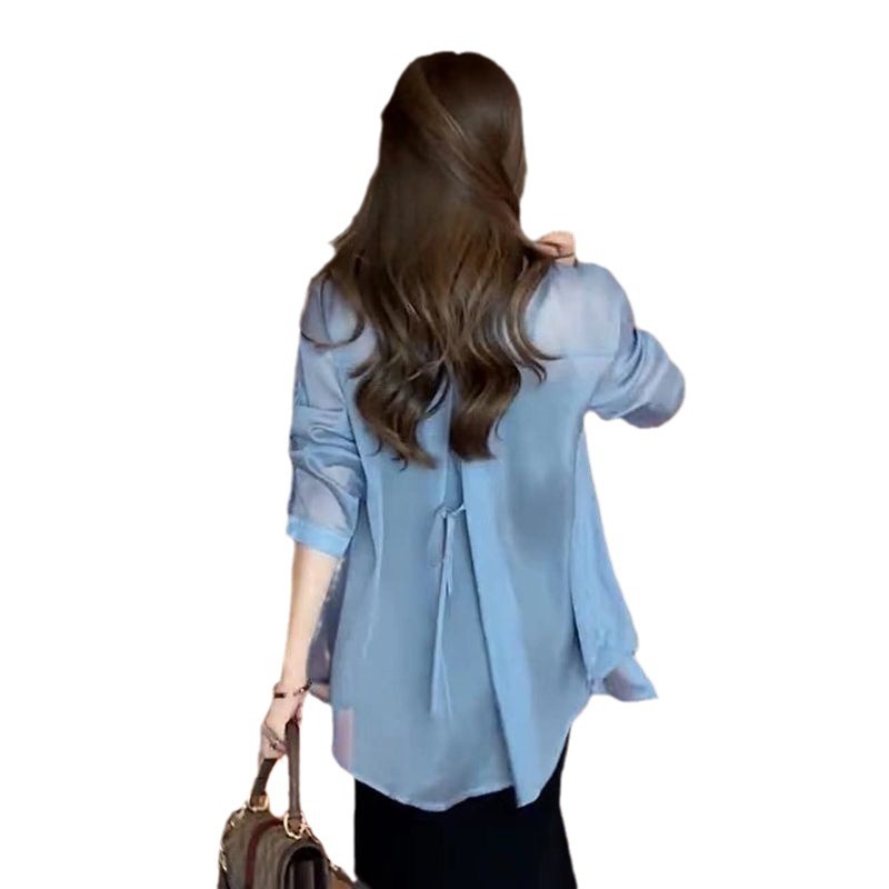 | nameOriginal | European Style Elegant Collar Chiffon Shirt Women's 2024 Summer New Design Sense New Chinese Style Cardigan Sunscreen Top |