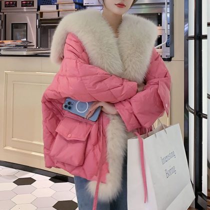 | nameOriginal | European-style faux fox fur parka down cotton-padded jacket warm women's 2022 fashionable young mid-length coat |
