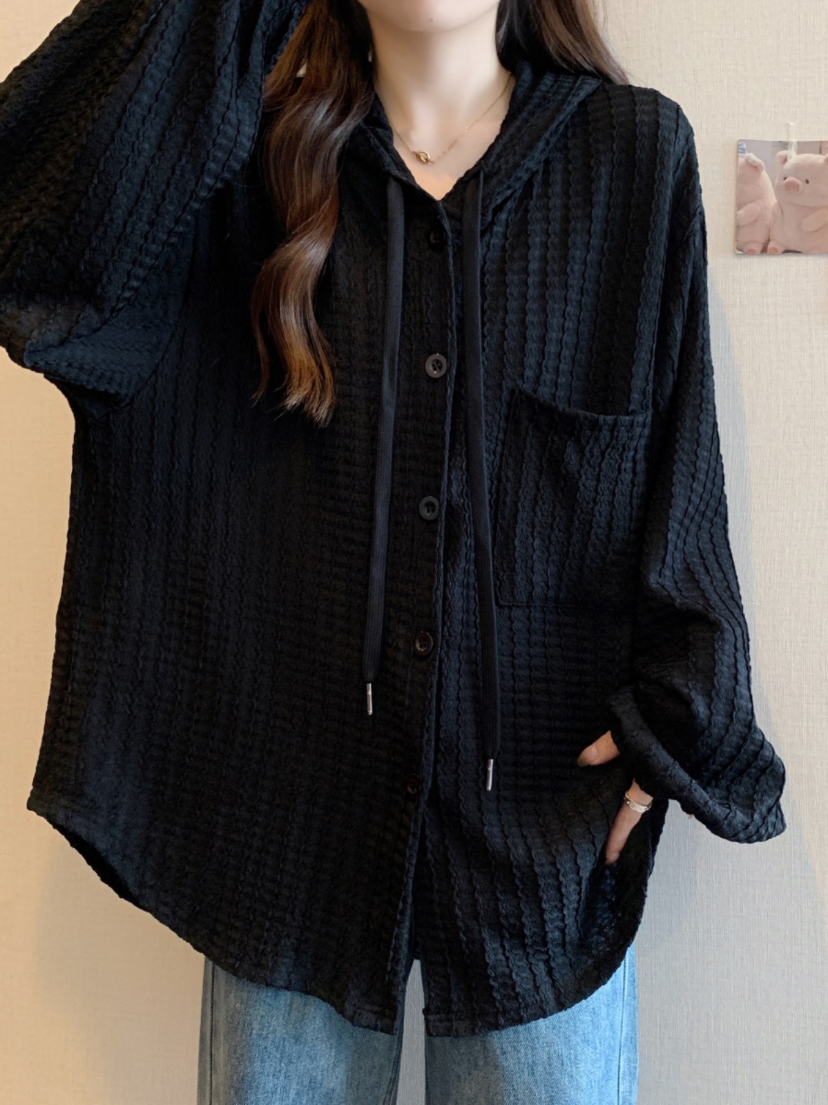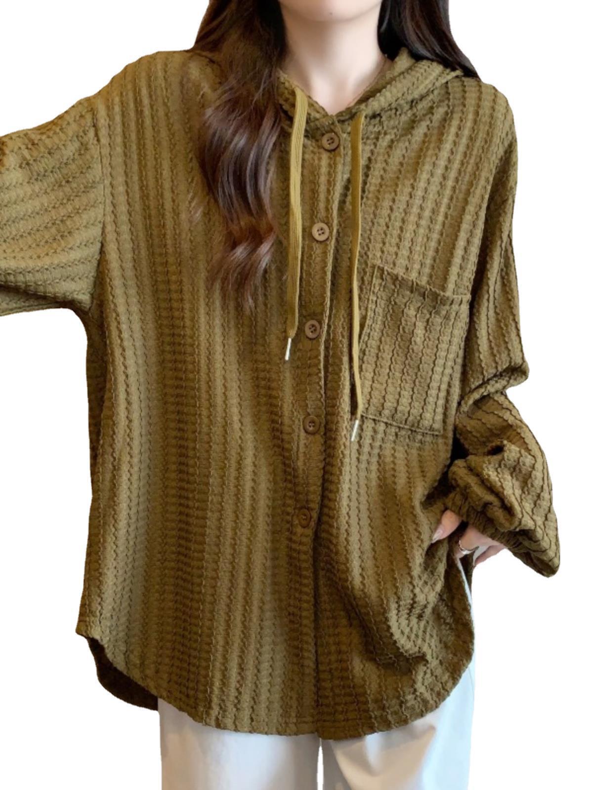 | nameOriginal | European-style plus size women's hooded long-sleeved shirt autumn chubby girl belly-covering and meat-hiding mid-length top |