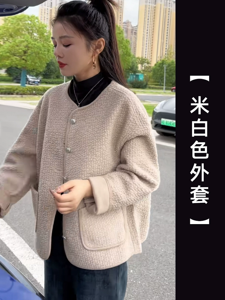 European style small fragrant woolen coat for women, high-end, slim, fashionable and trendy fur one-piece lamb wool top for small people