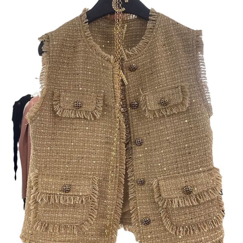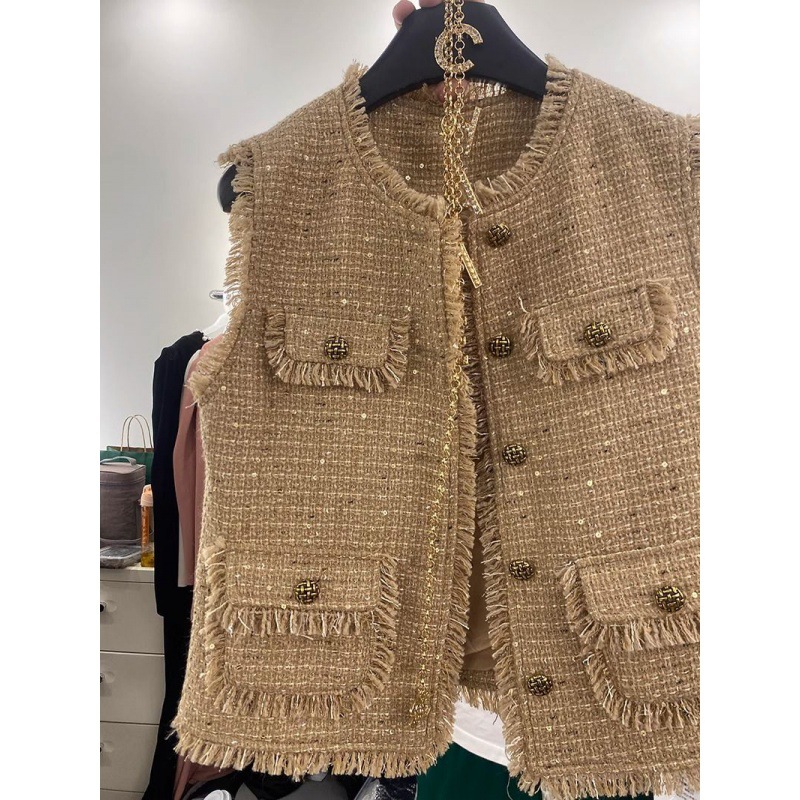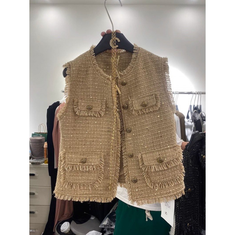 | nameOriginal | European style tweed tassel Chanel style vest coat 2023 Autumn New sleeveless outer vest |