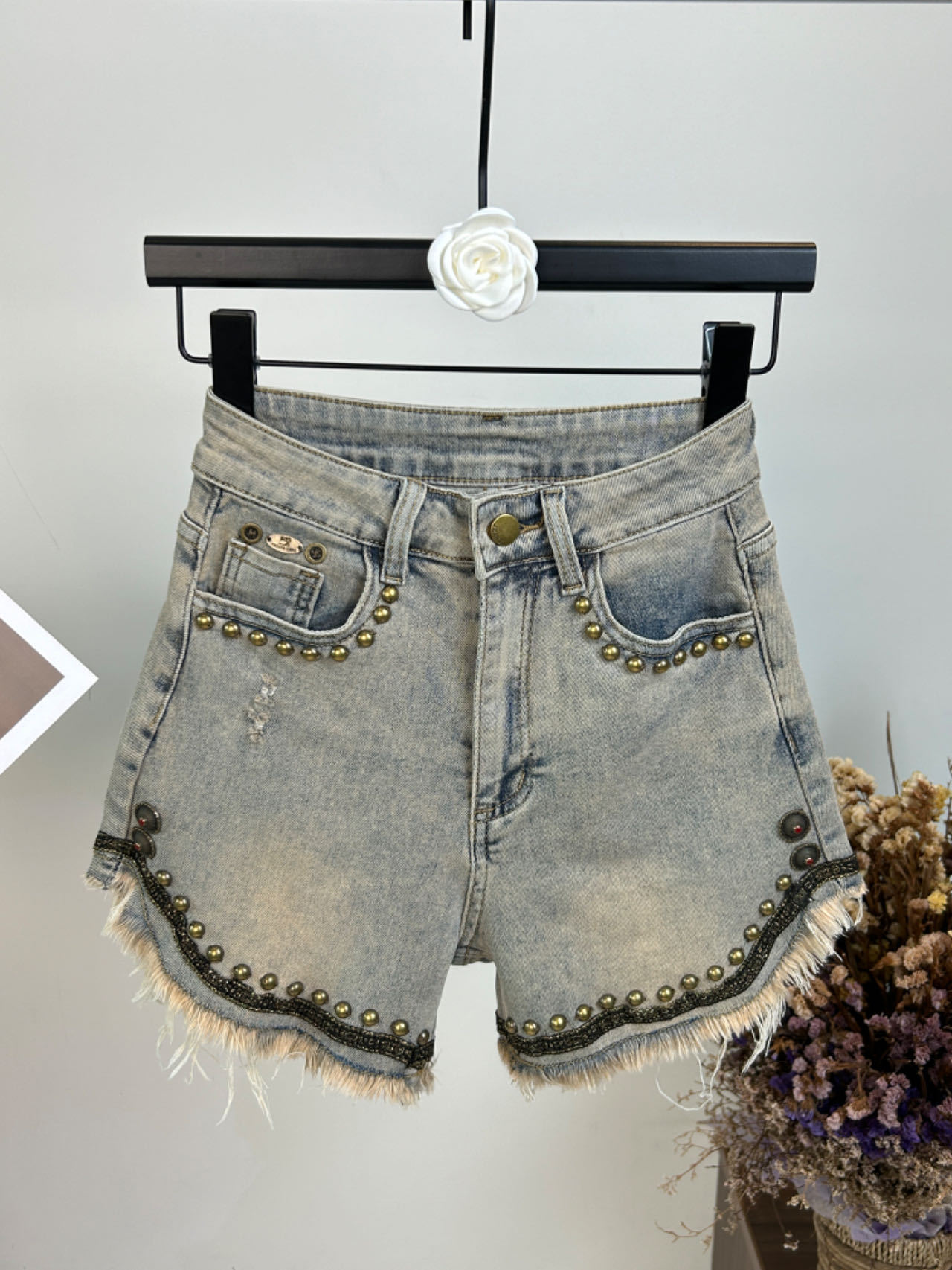 | nameOriginal | European Summer Heavy Industry Beaded Hot Pants Women's A- line Loose Wide Leg Pants Slimming Cyber Celebrity Denim Shorts |