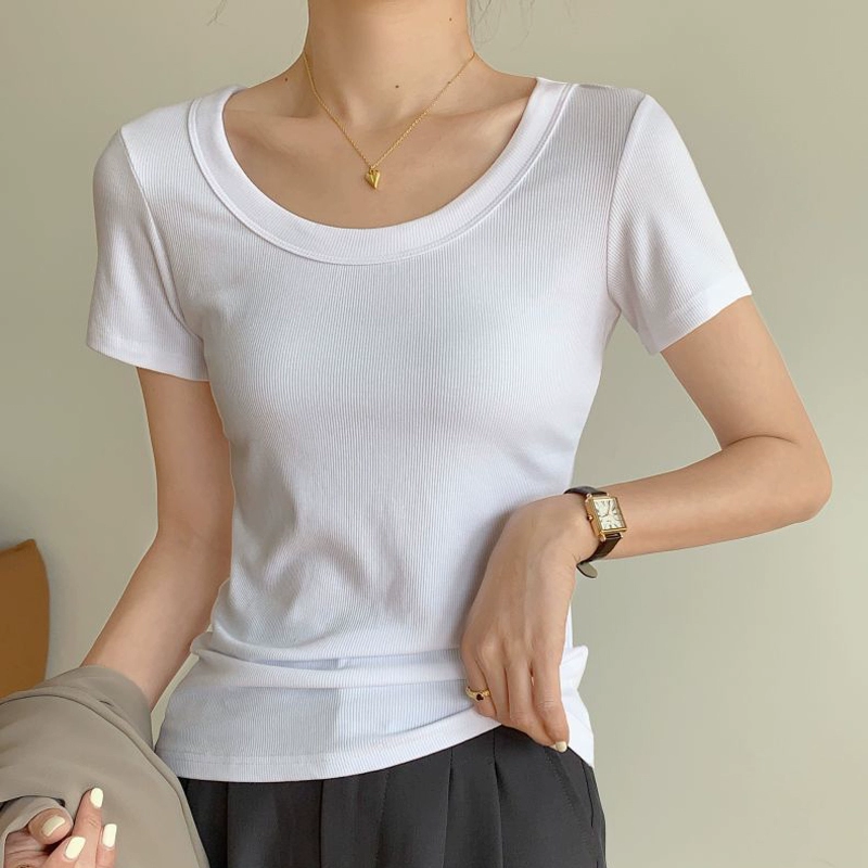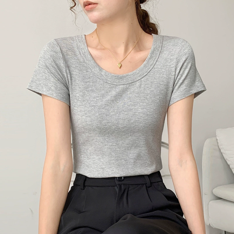 | nameOriginal | European threaded U-neck T-shirt women's short-sleeved 2024 summer new style loose slimming high-end T-shirt top bottoming shirt |