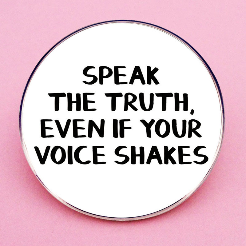 | nameOriginal | Even if the voice trembles, tell the truth. Brooch funny English pin badge metal alloy badge accessories |