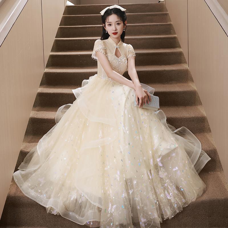 | nameOriginal | Evening Dress Women's 2023 New Art Test Elegant Long Dress High-end Niche Light Luxury Host Banquet Autumn High-end Sense |