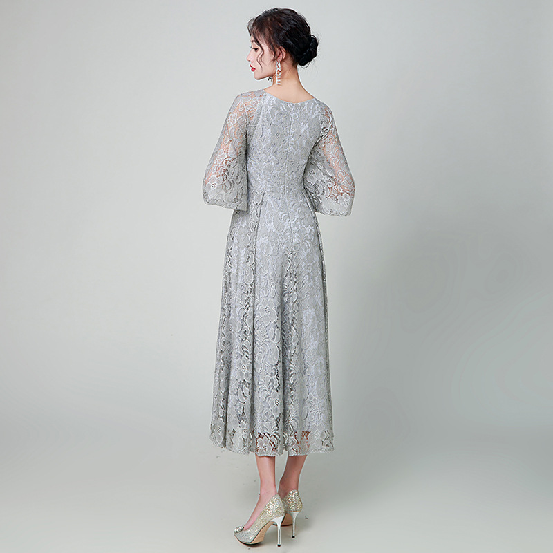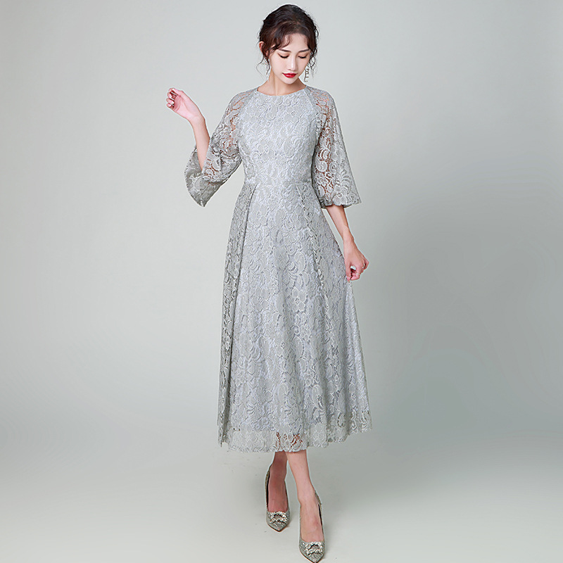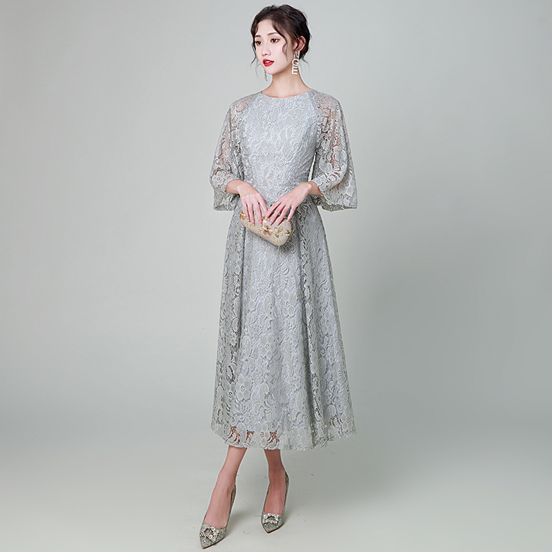 | nameOriginal | Evening Dress Women's 2023 New Large Size Floating Sleeve Belly Covering Slimming Fairy Grey European and American Independent Station Bridesmaid Dress |