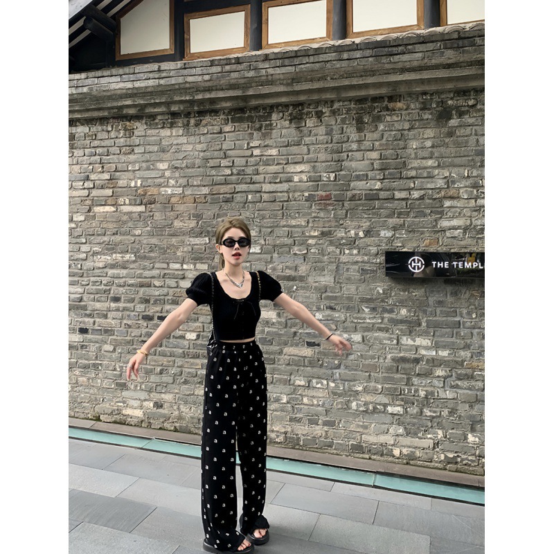| nameOriginal | Every day to wear pants Korean slim casual straight leg pants women's printed floor pants summer |