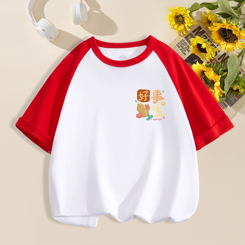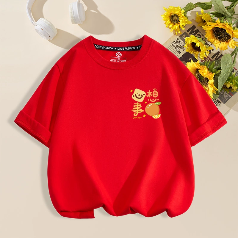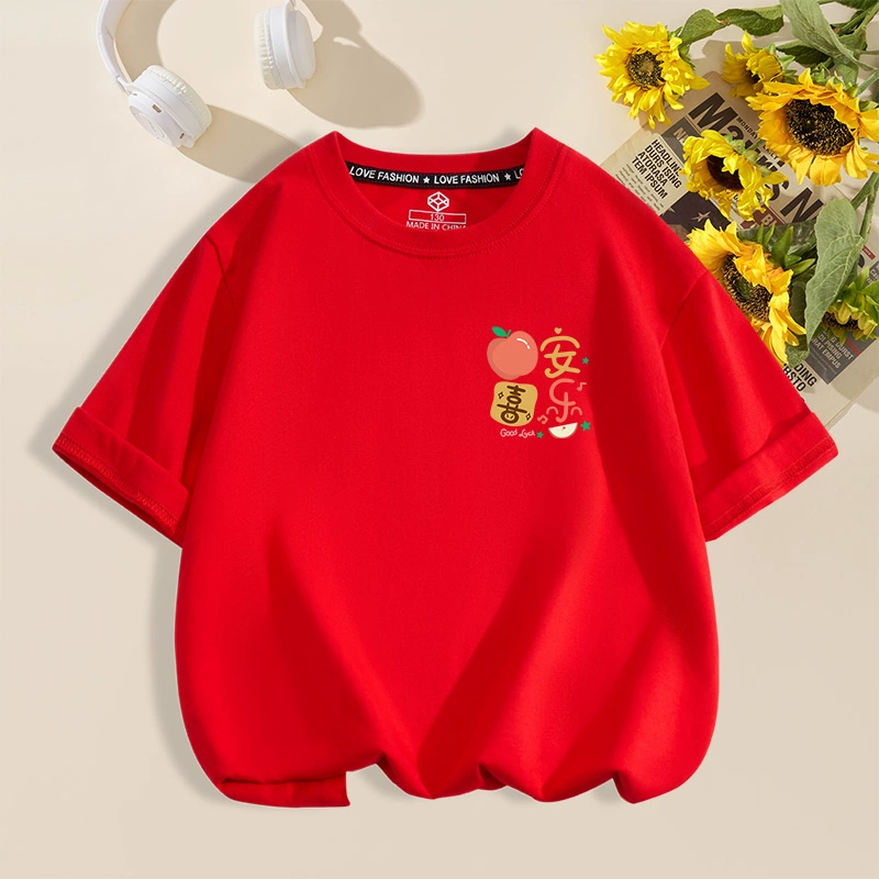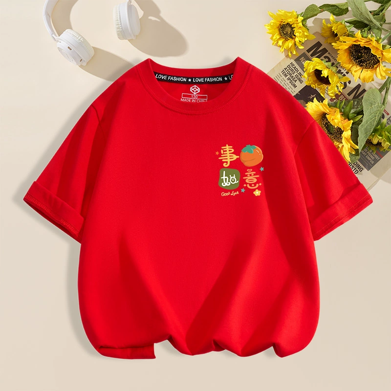 | nameOriginal | Everything goes well red cotton housewarming half-sleeved family outfit |