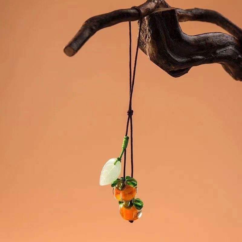 | nameOriginal | Everything goes well with the glass persimmon mobile phone chain lanyard retro Chinese style persimmon leaf has into a key pendant pendant jewelry |