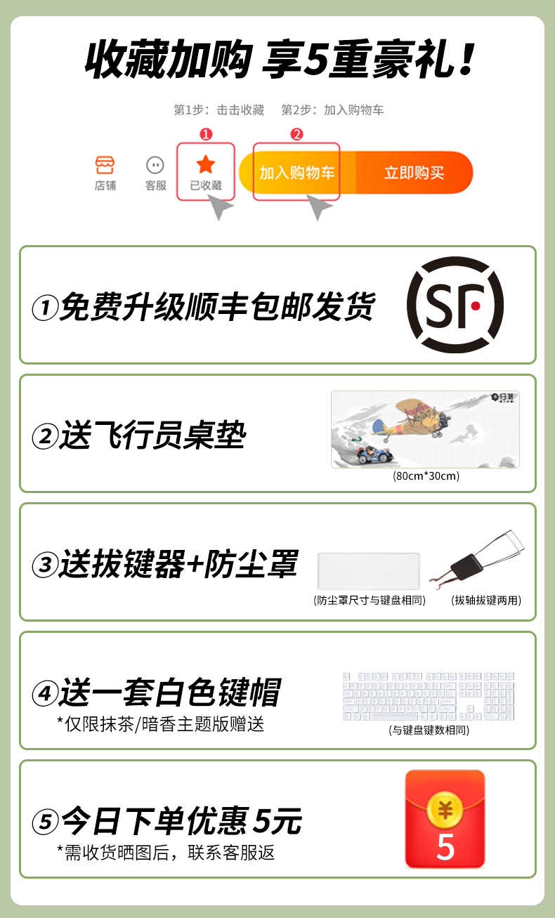 Eweadn Cherry Wireless Side Captive Green Shaft Mechanical Keyboard