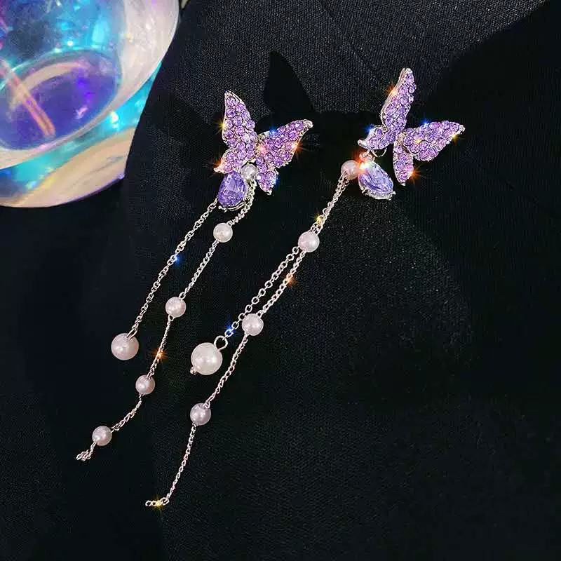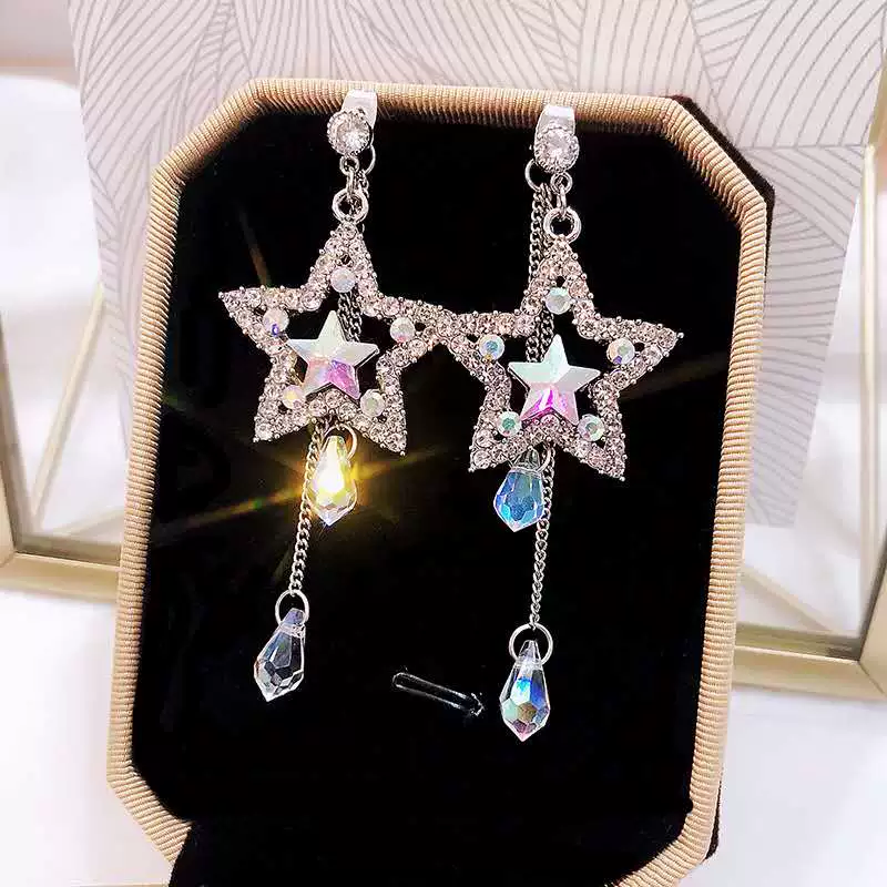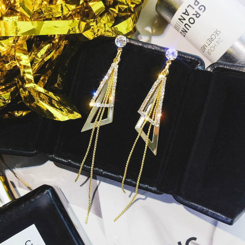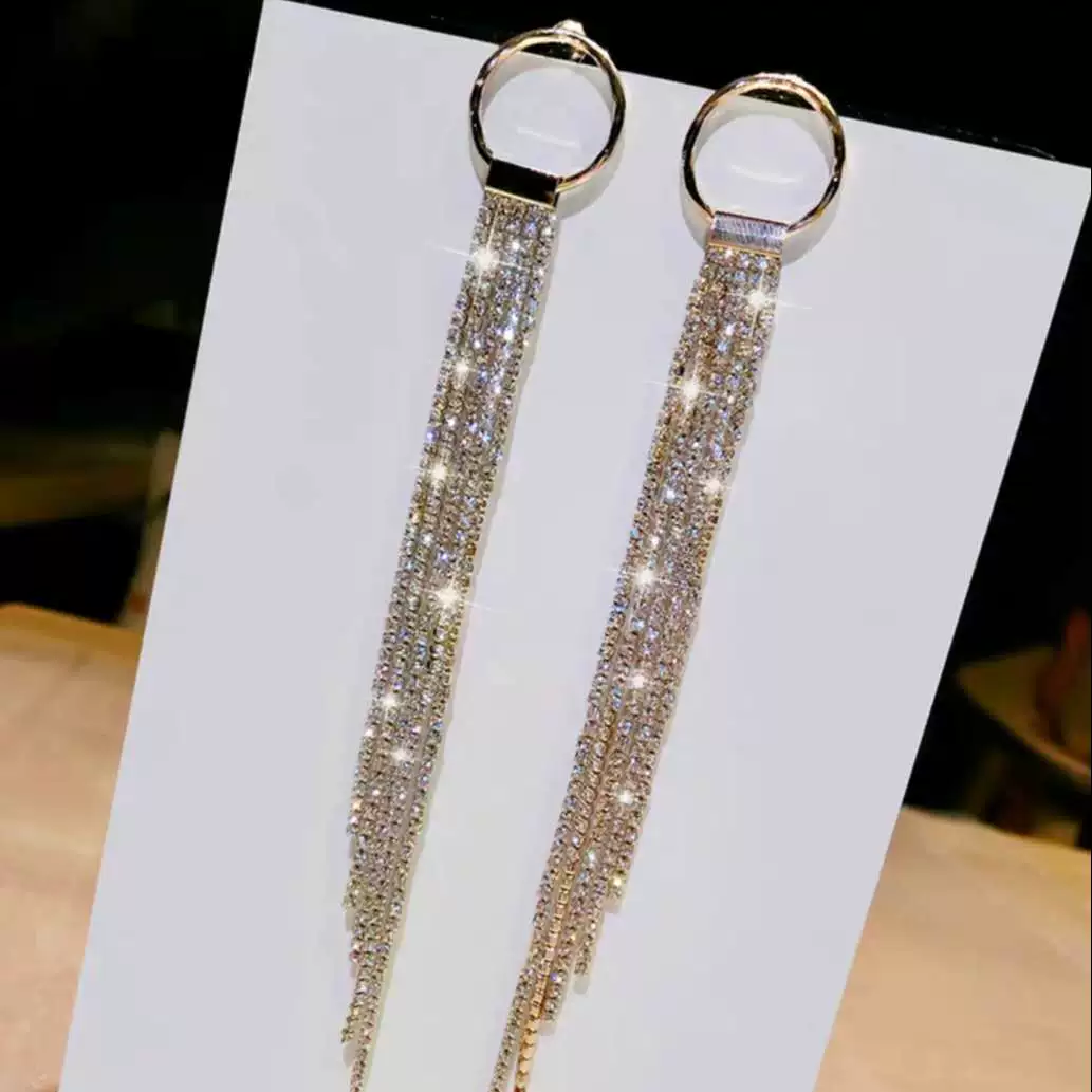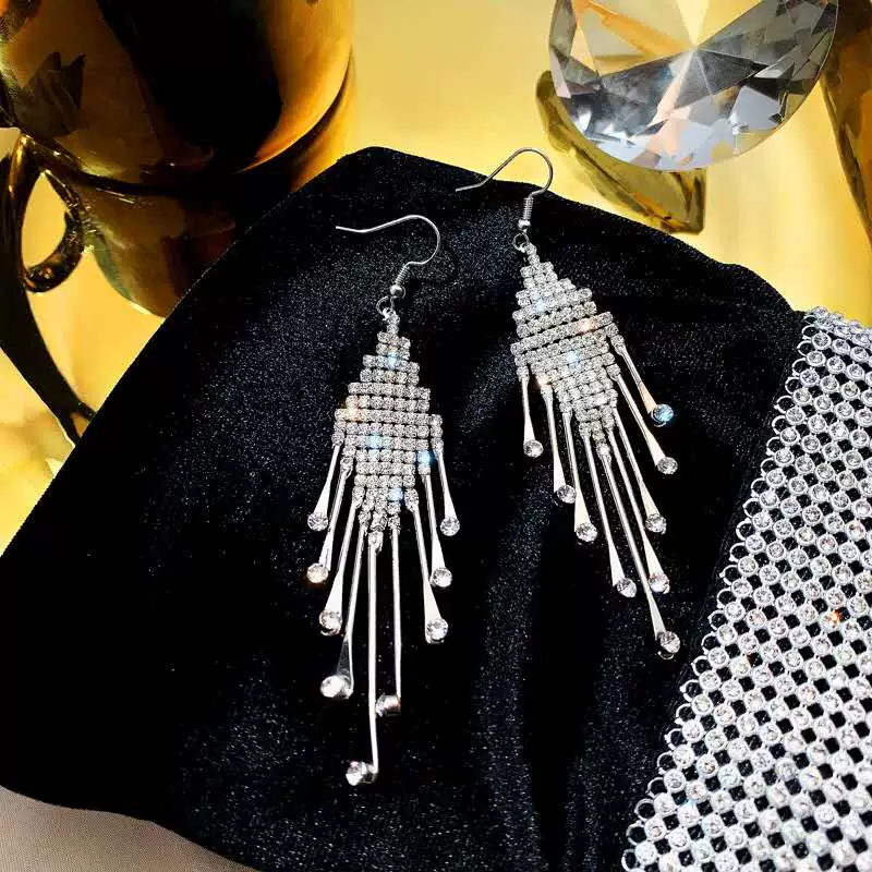 | nameOriginal | Exaggerated diamond-filled female Internet celebrity slimming tassel earrings |