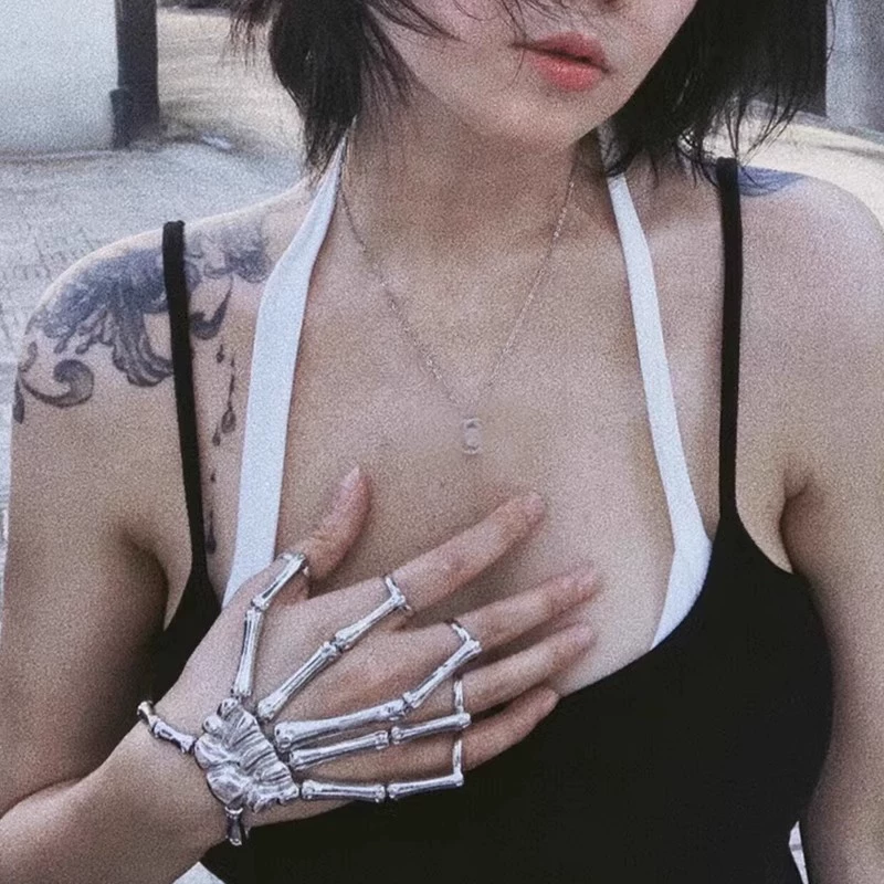 | nameOriginal | Exaggerated personality skull skeleton exoskeleton bracelet halloween gloves flexible and adjustable men and women accessories trendy |