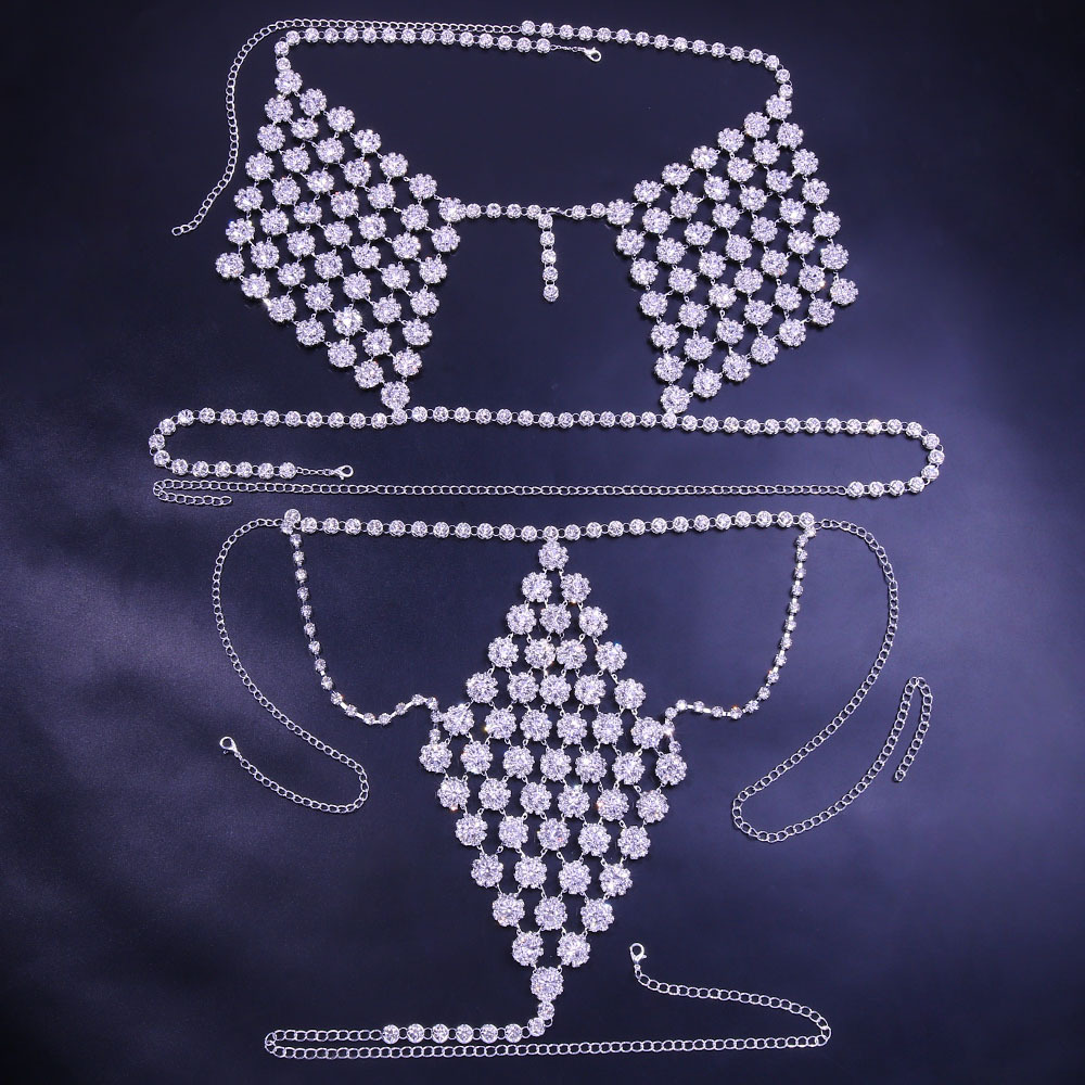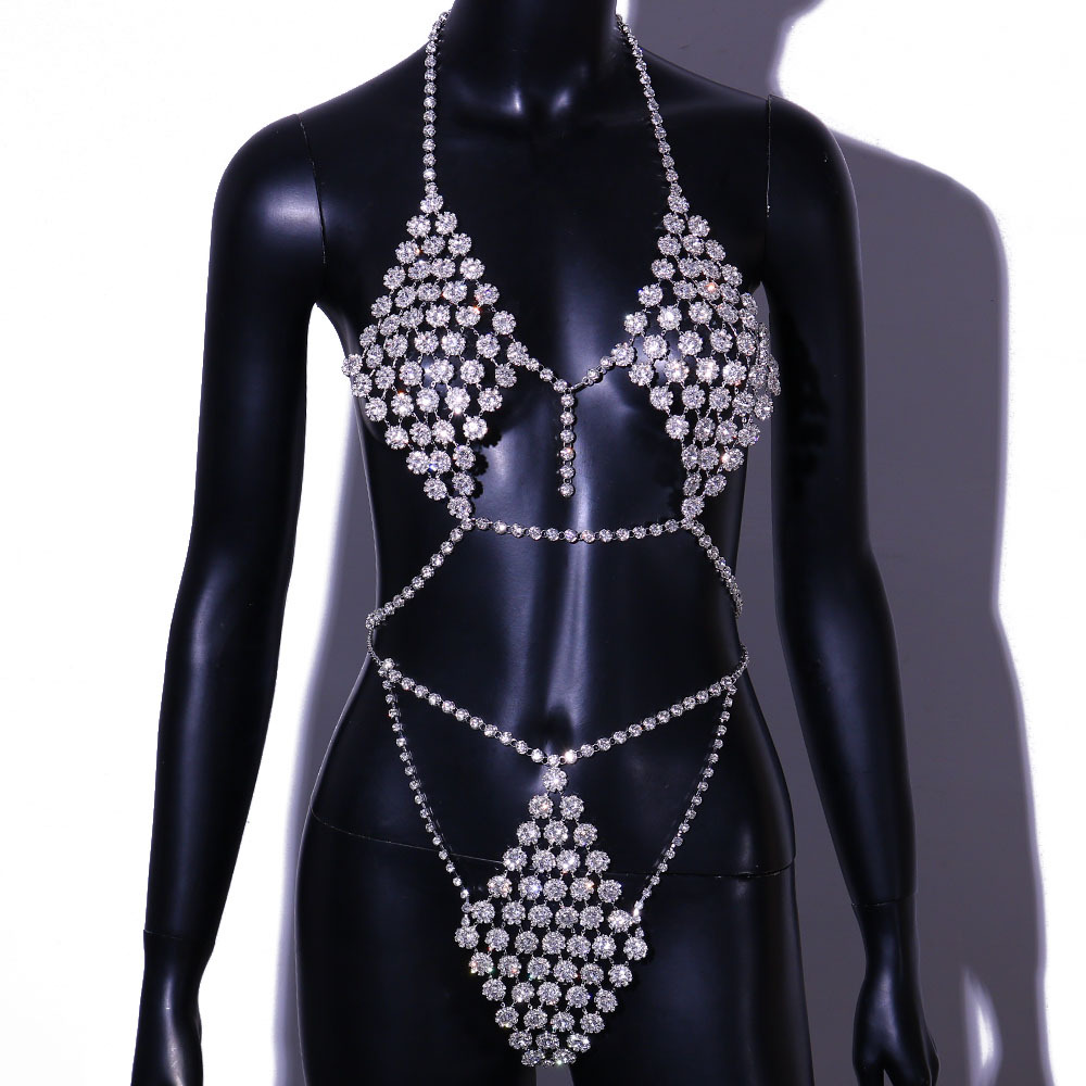 Exaggerated sexy chest chain Body chain round diamond bikini set European and American trend Body chain