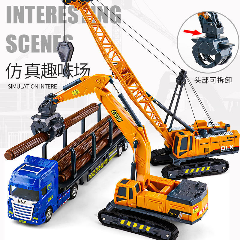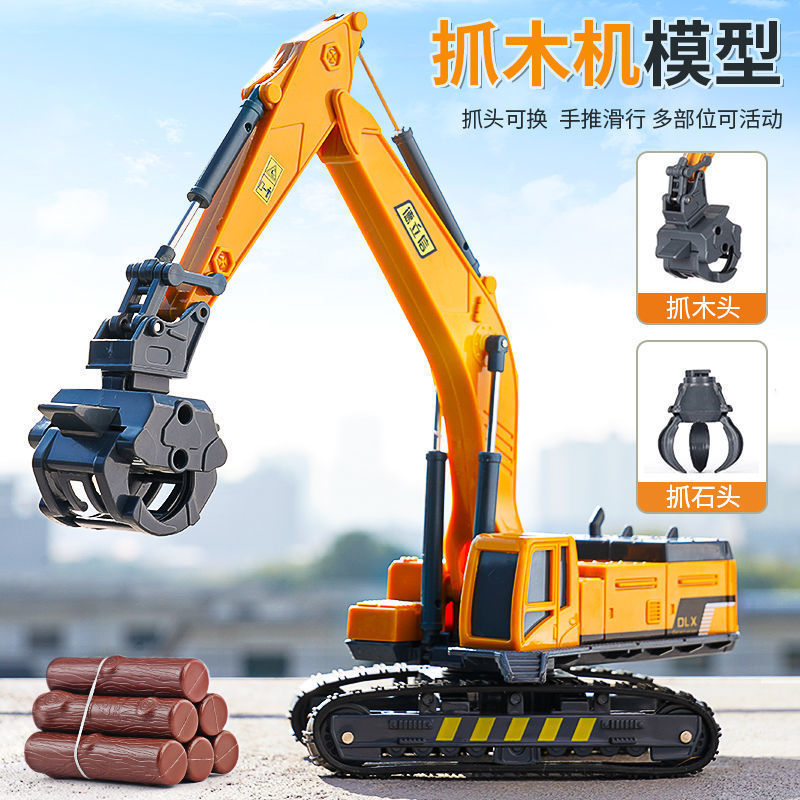 Excavator Grab Wood Machine Toy Simulation Engineering Vehicle Model Child Excavator Wood Transporter Crane Boy