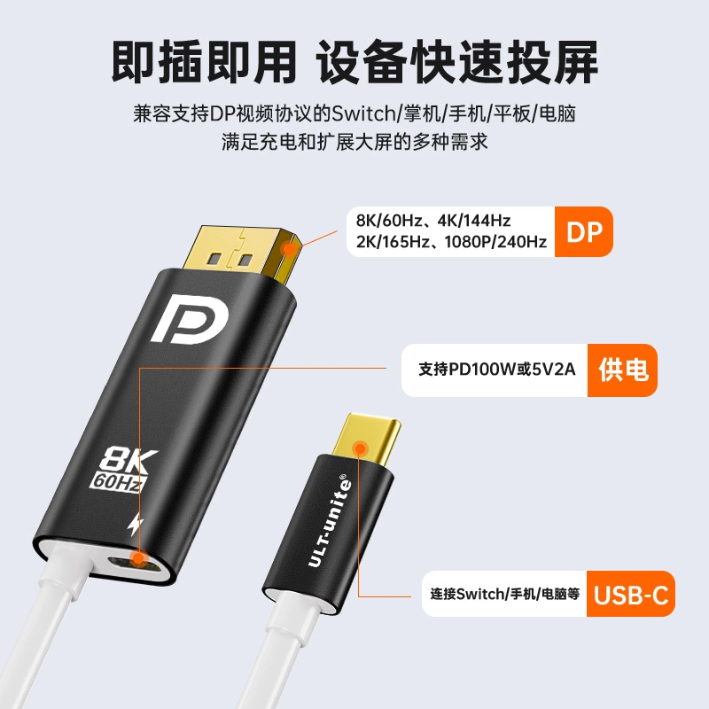 | nameOriginal | Excellent typec to dp cable with power supply 8K60Hz high-definition 4K240 connector 1.2 conversion displayport1.4 Thunderbolt 4/3 laptop usbc external display extension |