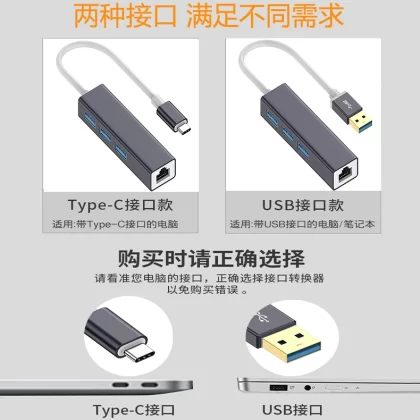 Expansion dock typec to network port notebook network cable to interface converter Apple mac Lenovo Xiaoxin USB to rj45 Ethernet computer docking station