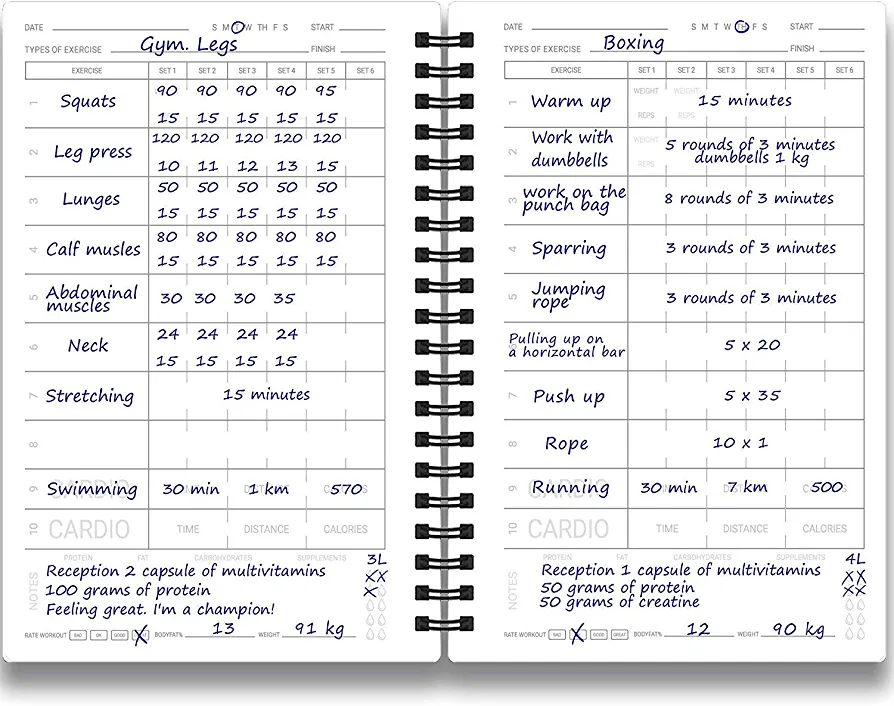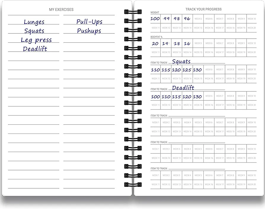 📖 The stylish 150-page exercise log is durable and features a protective cover layer, high-quality paper, and sturdy wire binding to prevent wear and tear.