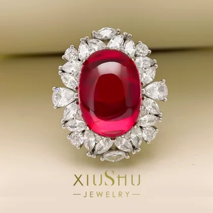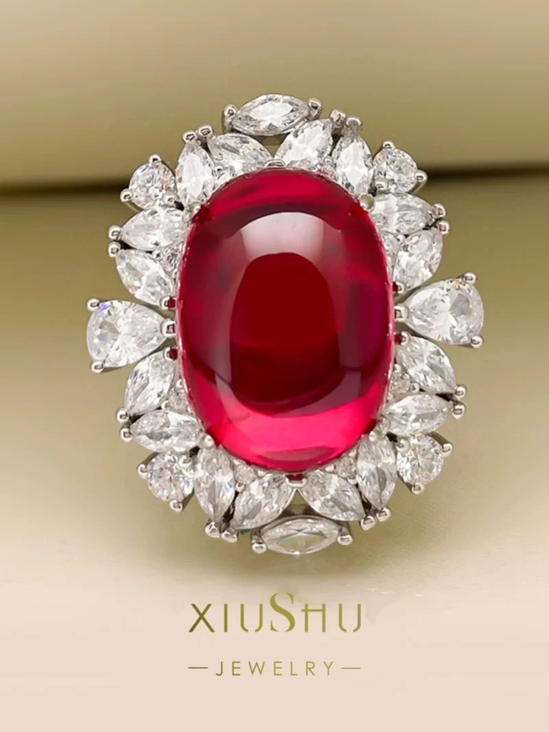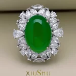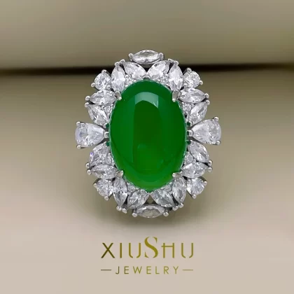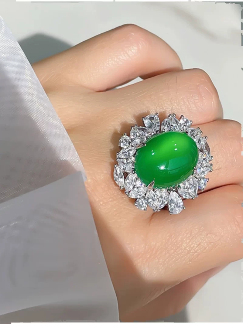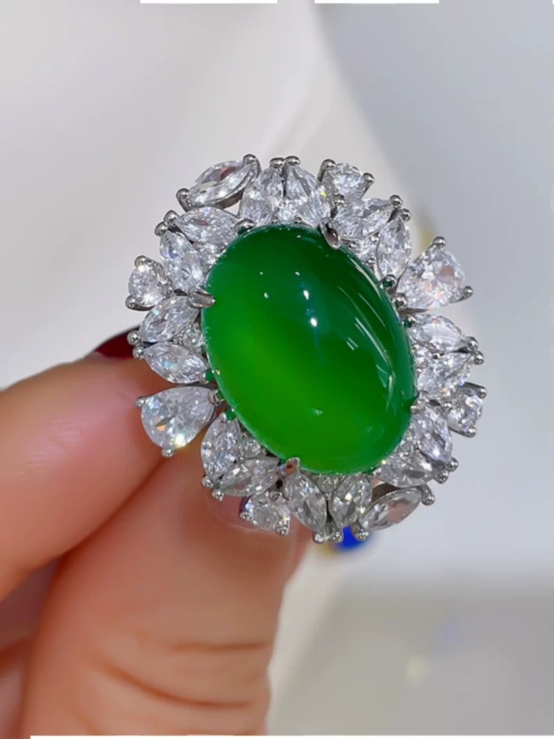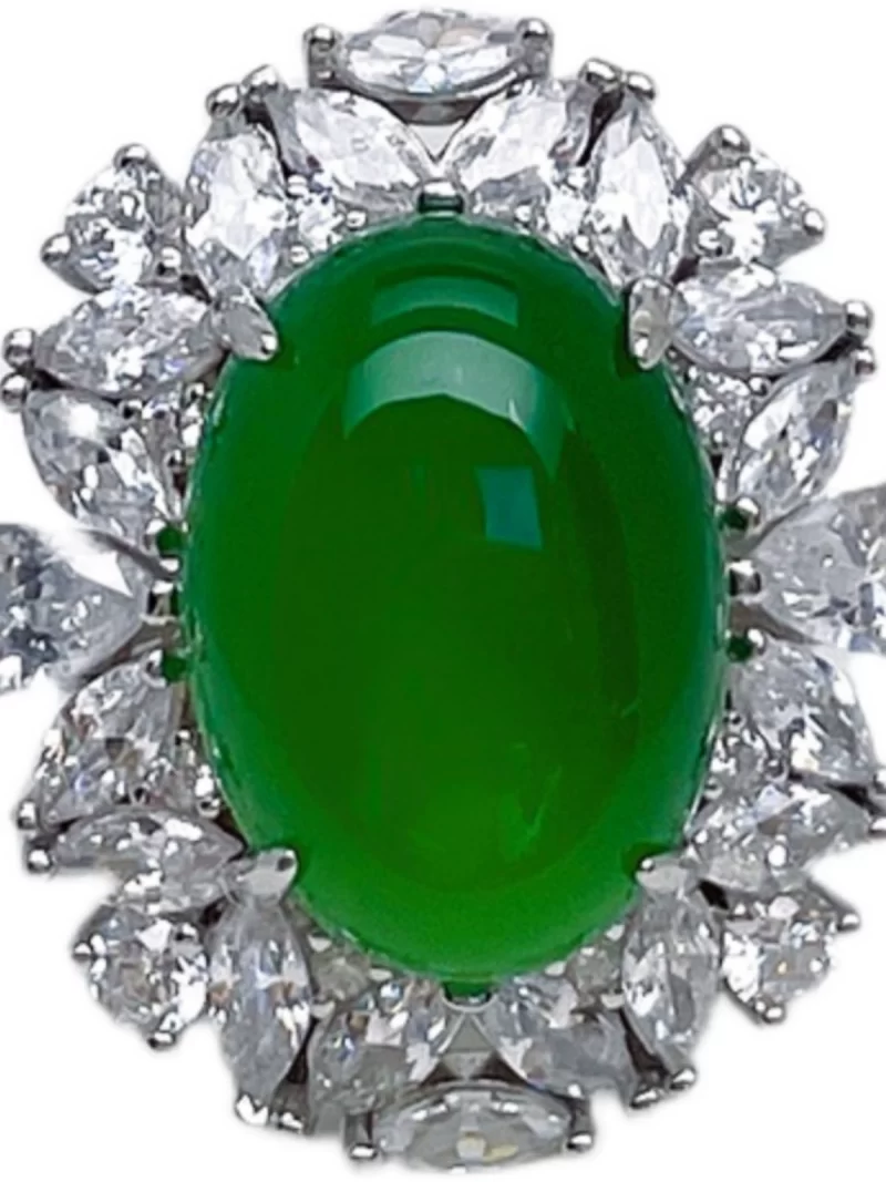 nameOriginal | Exploding Ice Brazilian Large Pigeon Egg Chrysoprase Luxury Ring Comparable to Jadeite 925 Sterling Silver High Fluorescence 53 |