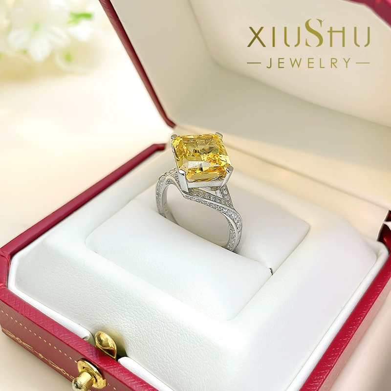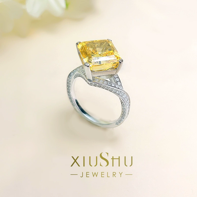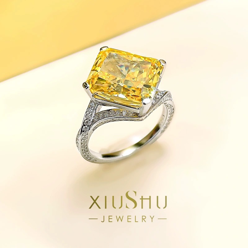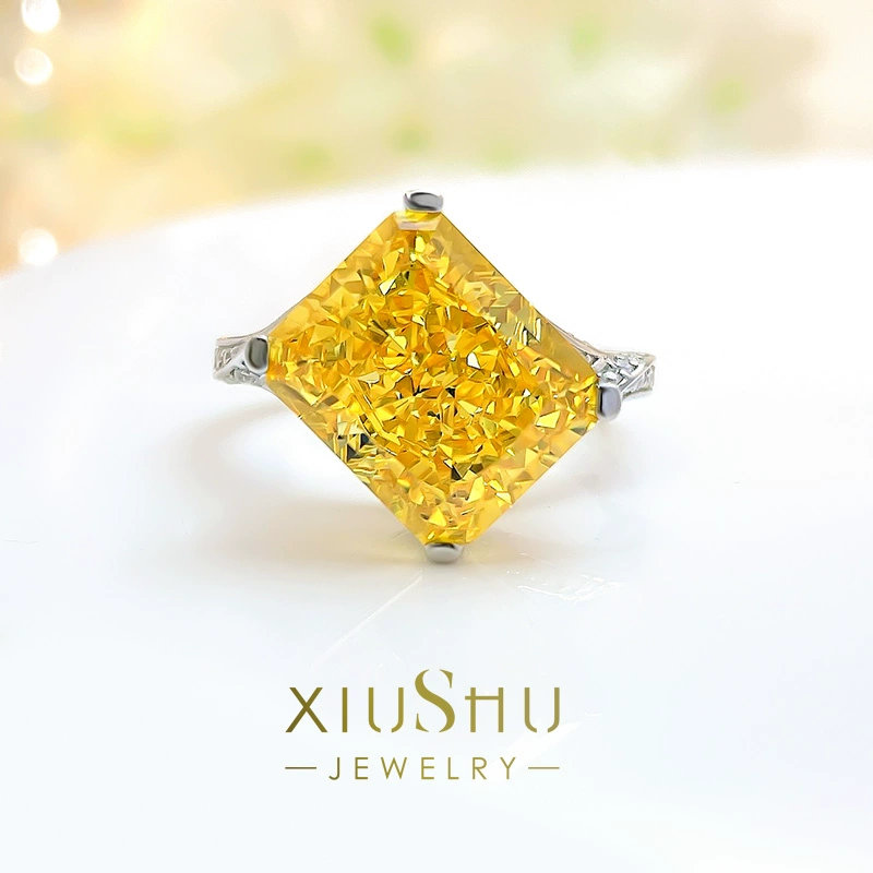 | nameOriginal | Exploding Radiant Crushed Ice Cut Intense Yellow Diamond Ring Rectangular 925 Sterling Silver High Carbon Diamond Banquet Style New Temperament |