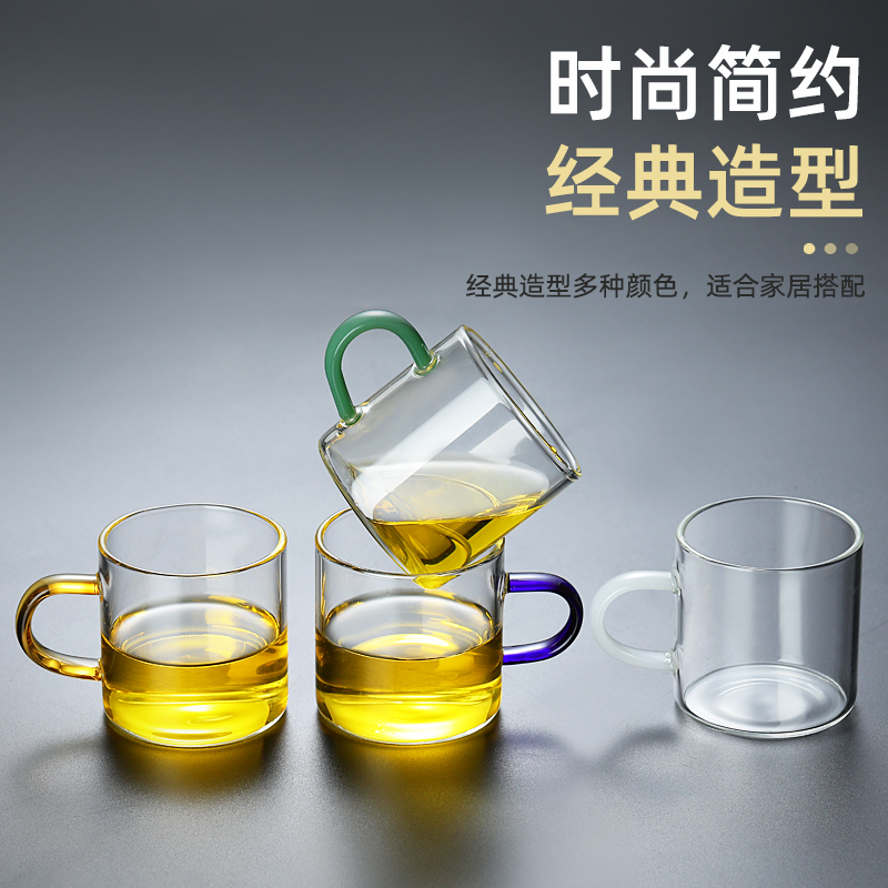 Explosion-proof Borosilicate Glass Small Tea Cup with Handle Transparent Thickened Heat-resistant Tea Cup Master Cup Household Kung Fu Tea Cup