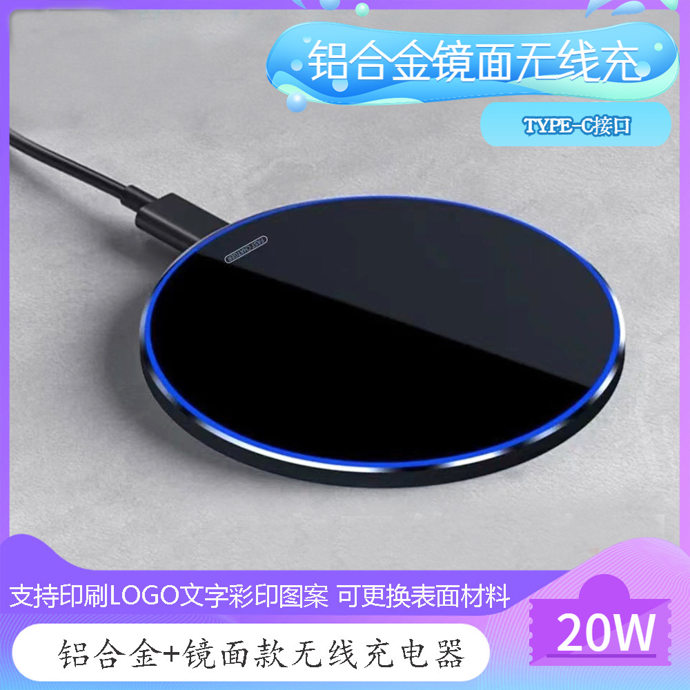 Explosions 20W mirror aluminum alloy wireless charging for Huawei Apple Android 30W mobile phone charging round mirror