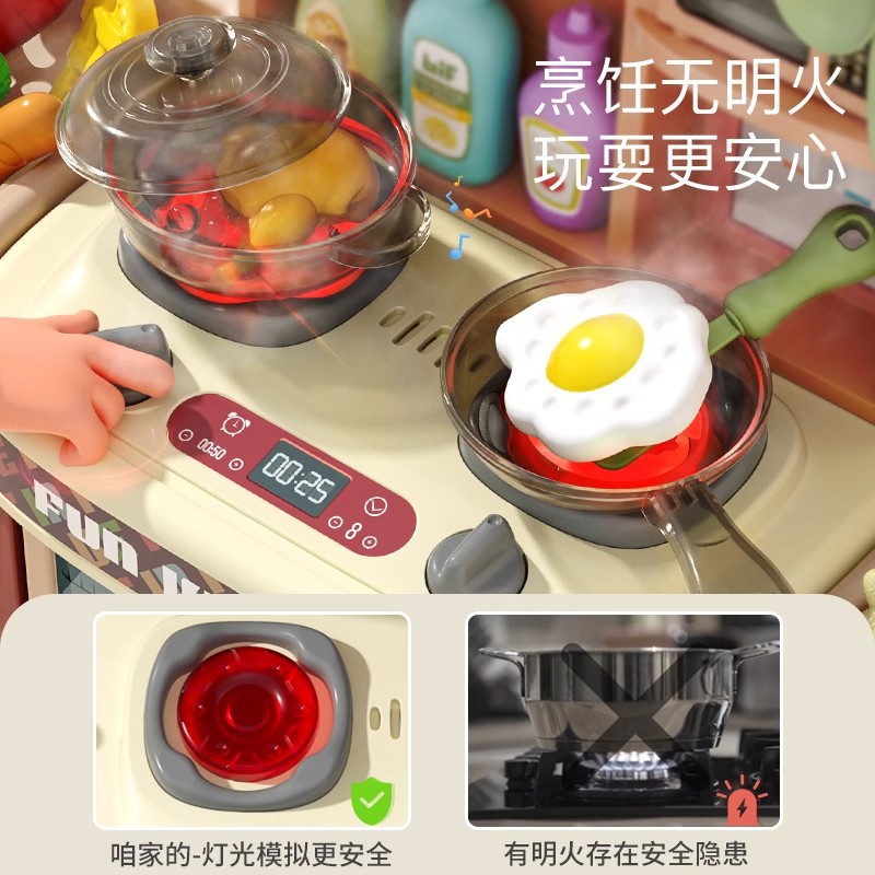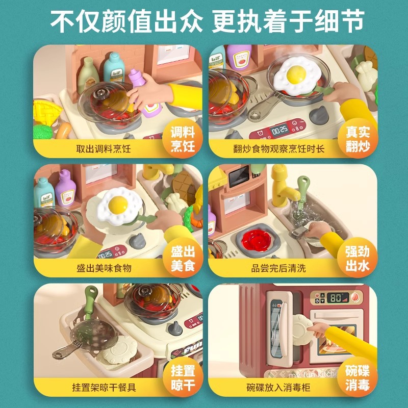 | nameOriginal | Explosions children's simulation small kitchen toy girl play house cooking stir-fry washing pool dining table kitchenware suit gift |