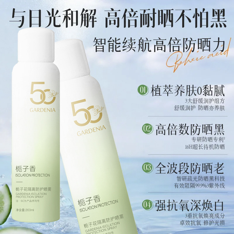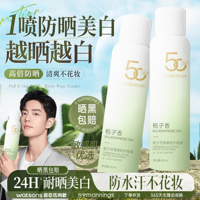 | nameOriginal | Explosions Gardenia Whitening Sunscreen Spray UV Anti-sweat Isolation Sunscreen Refreshing Body Universal Genuine |