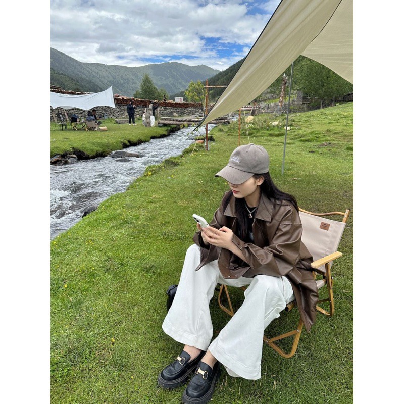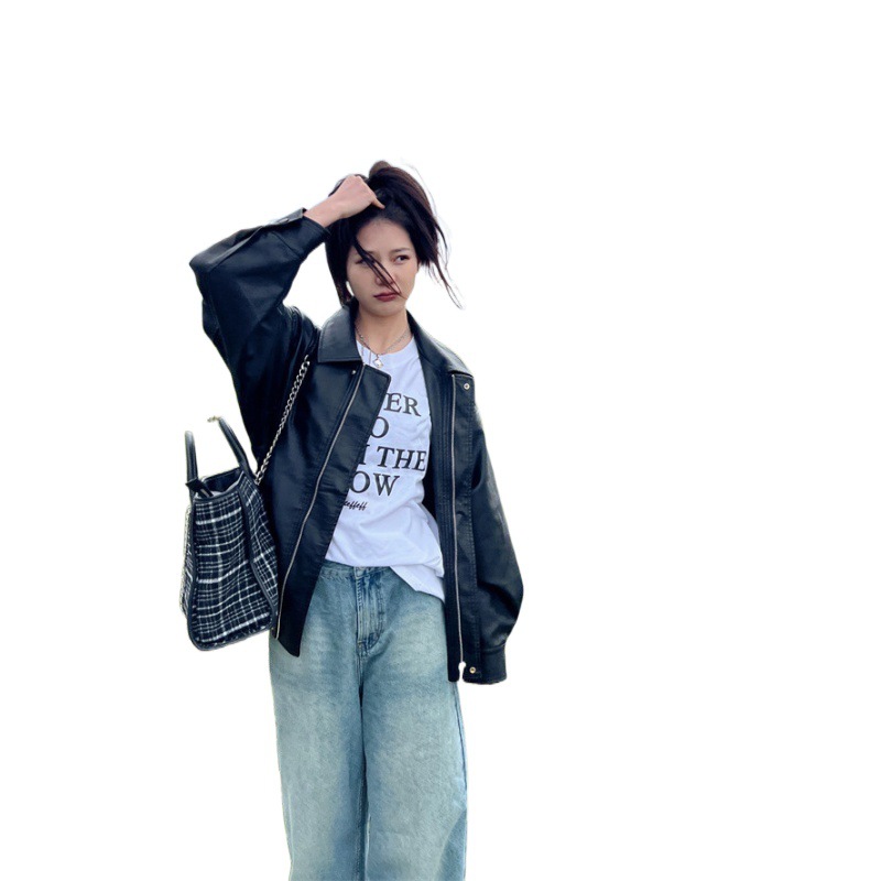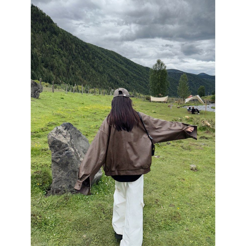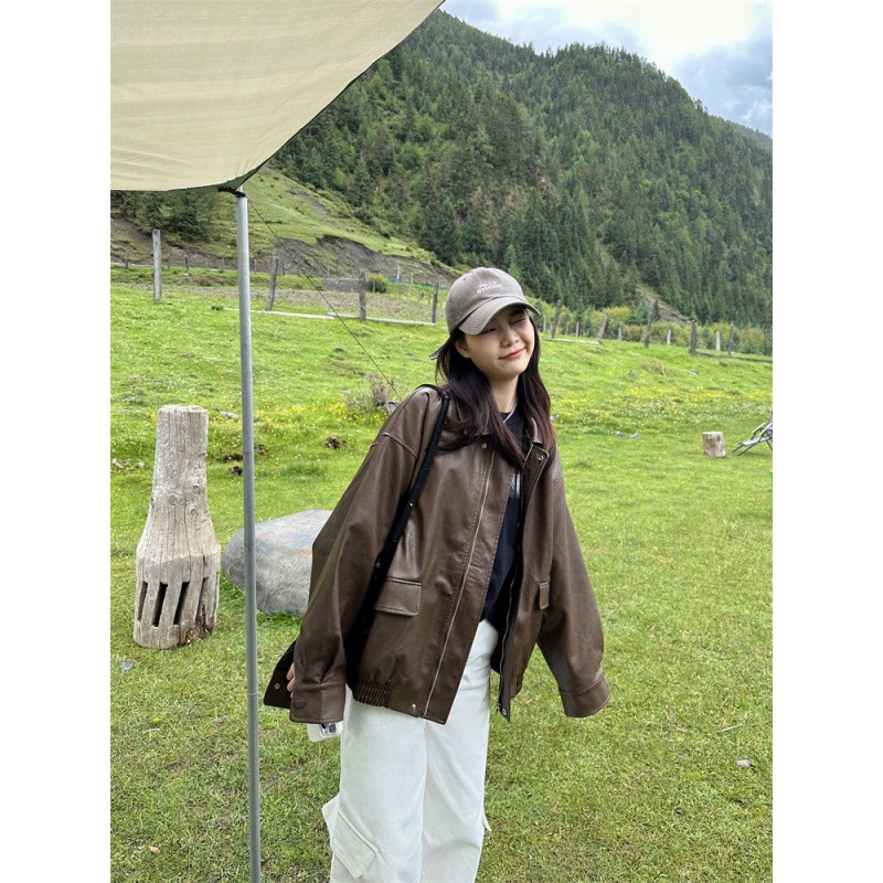 | nameOriginal | Explosions Leather Jacket Women's 2024 Spring and Autumn American Retro Brown Leather Jacket Maillard Trendy for Petite |