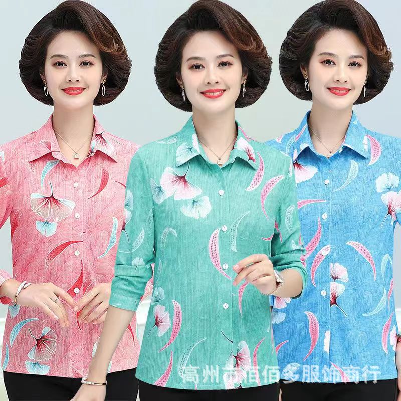 | nameOriginal | Explosions middle-aged and elderly sub-size shirt women's seven-point sleeve loose top 45~60 lapel summer mother pullover long sleeve |