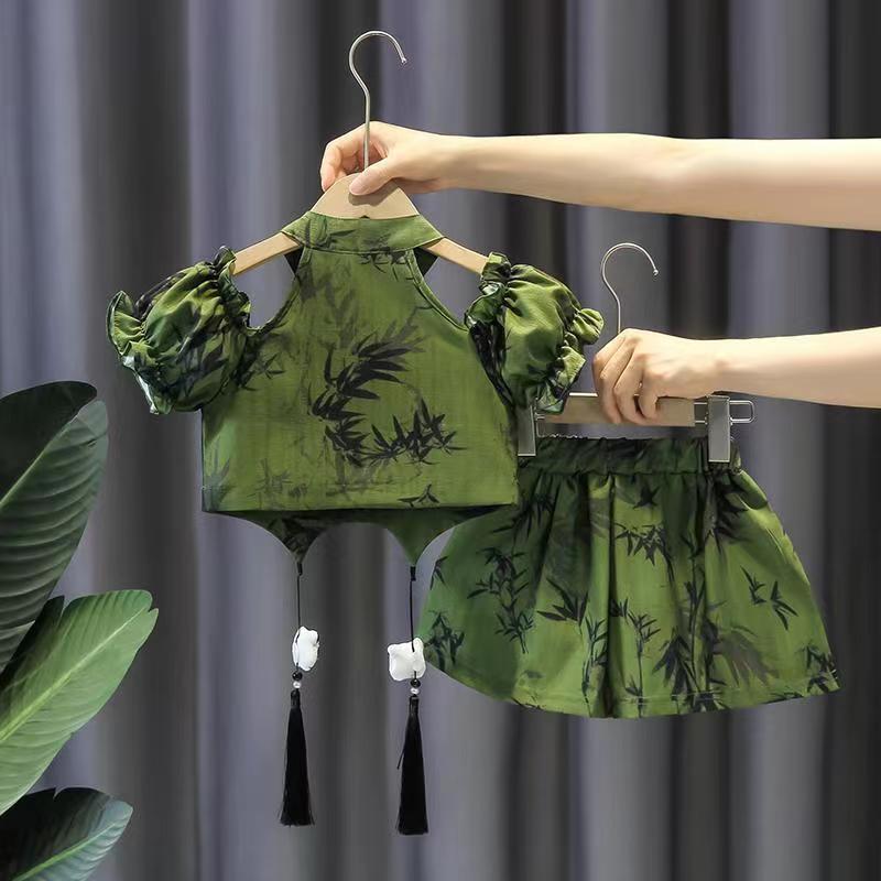 Explosive 2024 New TikTok Cotton Summer Fashion Mint Mambo Thin Loose New Chinese Cartoon Two-piece Set