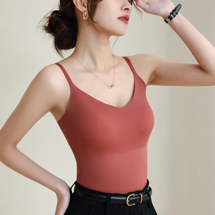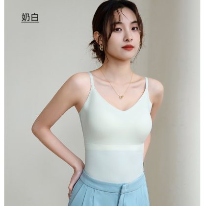 nameOriginal | Explosive 6617 No Mark Ice Silk Air Cup Camisole Outer Wearing Inner Wearing Beautiful Back Slim-fit Slimming Base Top Women |