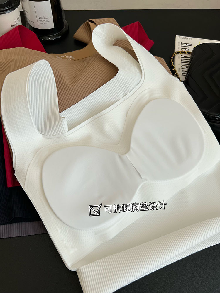 | nameOriginal | Explosive Ice Silk Wide Shoulder Belt Vest Women's Belt Chest Pad Outer Wear Square Neck White Beautiful Back Inner Wear Comfortable Simple Top |