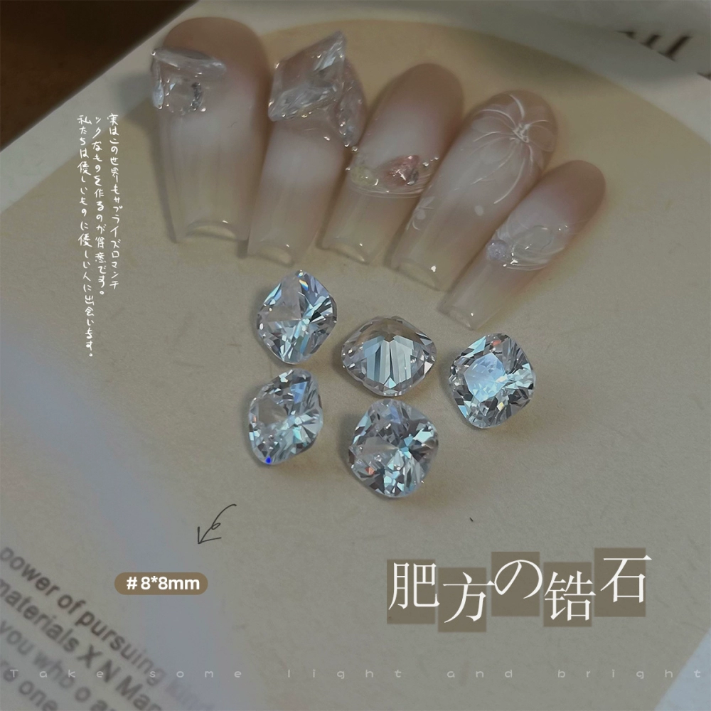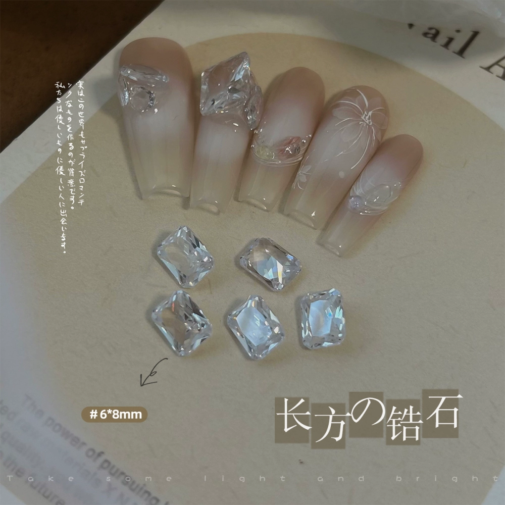 | nameOriginal | Explosive manicure diamond jewelry, transparent bottom, beveled zircon, pointed bottom diamond, high carbon transparent, with its own fire color, 2 rock sugar fertilizer cubes |