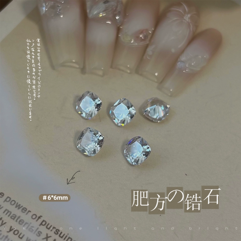 | nameOriginal | Explosive manicure diamond jewelry, transparent bottom, beveled zircon, pointed bottom diamond, high carbon transparent, with its own fire color, 2 rock sugar fertilizer cubes |
