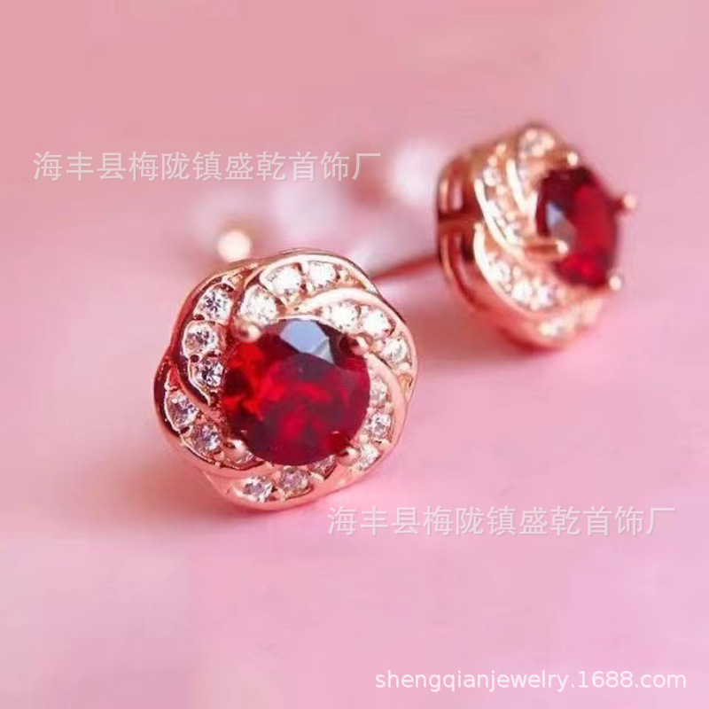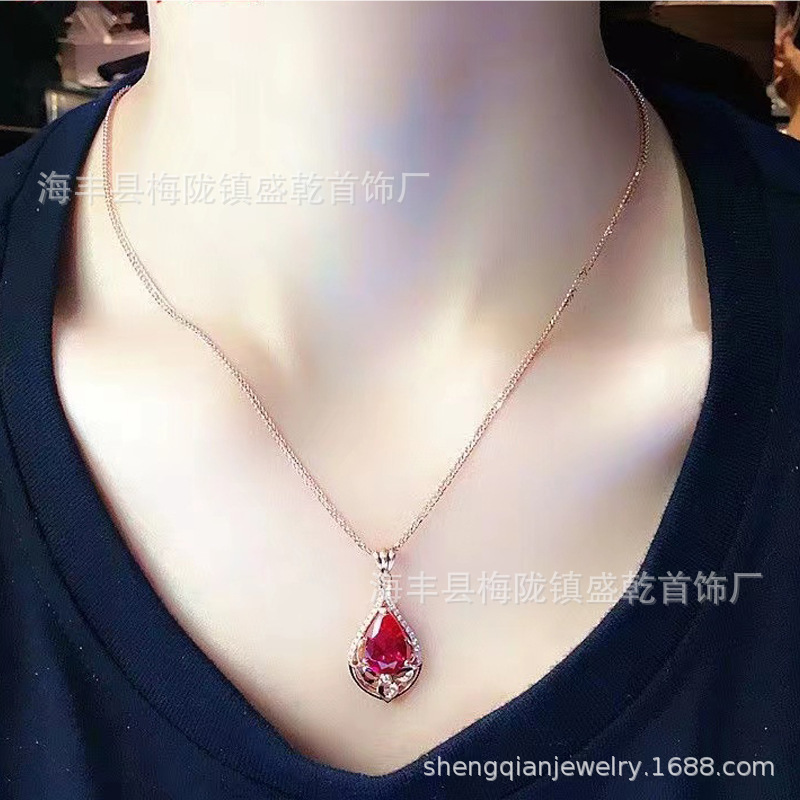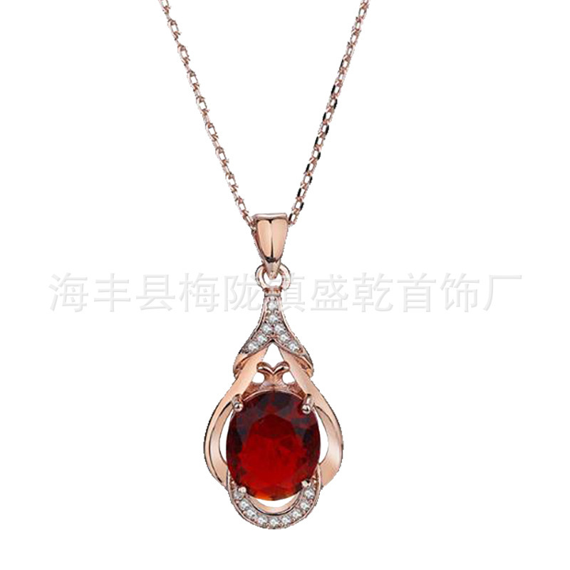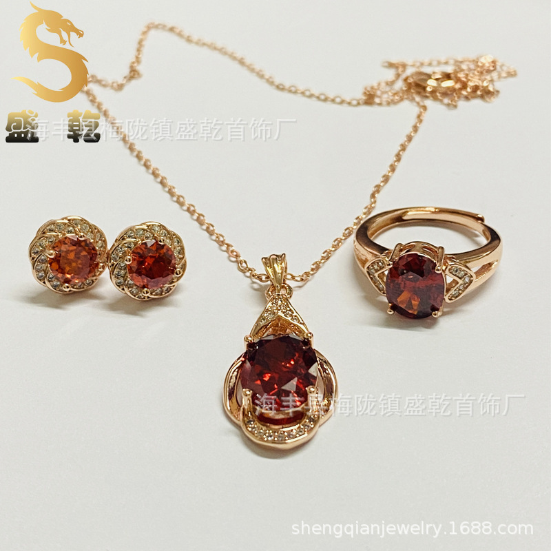 Explosive Pigeon Red Tourmaline KF Pendant Color Gem Rose Bag Gold Necklace Women’s Ring Women’s Earrings Jewelry suit