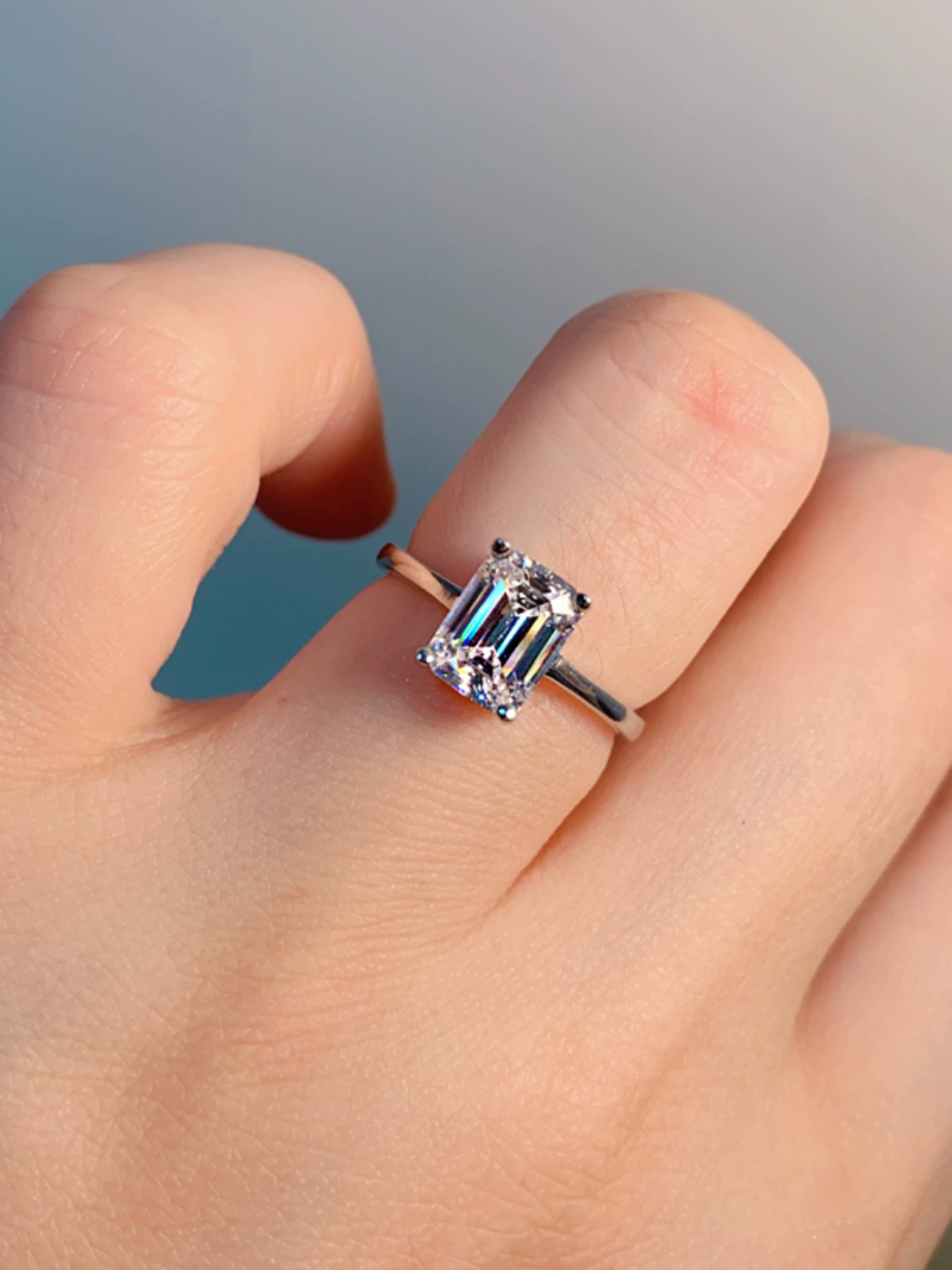 | nameOriginal | Explosive simulation diamond ring for women high-definition 925 sterling silver imported high carbon diamond square emerald cut 1-2 carat rock sugar |