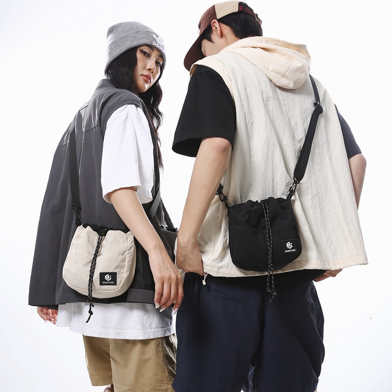 | nameOriginal | Export Canvas Crossbody Bag 2024 Korean Style Couple High-end Outgoing Shoulder Bag Locomotive Drawstring Bucket Bag |