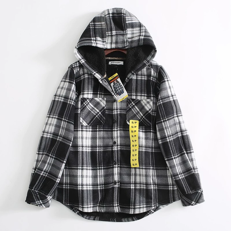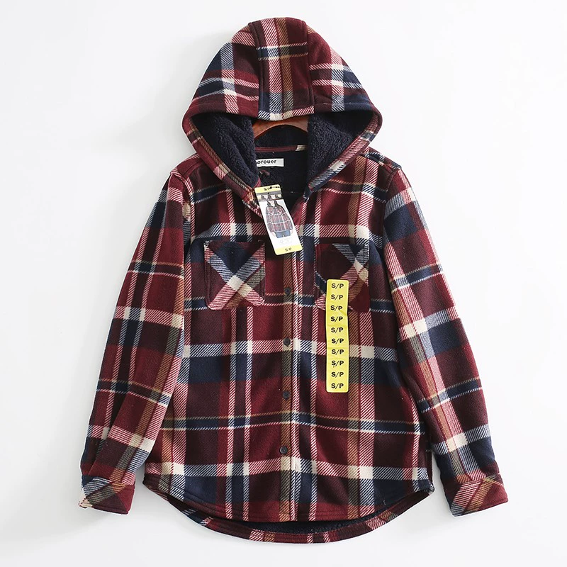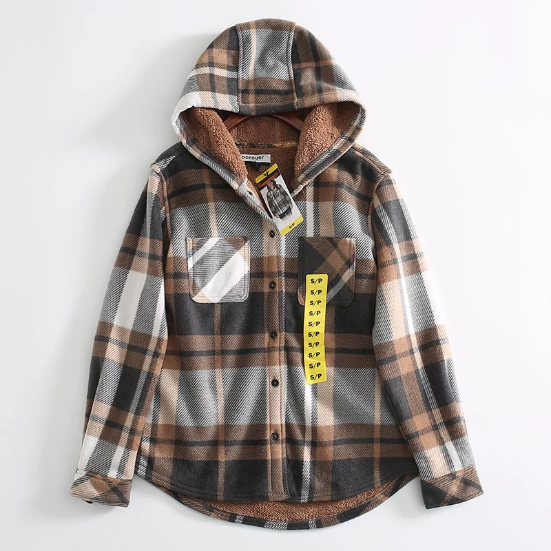 | nameOriginal | Export order to Canada! Sheep wool plus velvet thickened warm hooded long-sleeved plaid shirt jacket cotton coat for women |