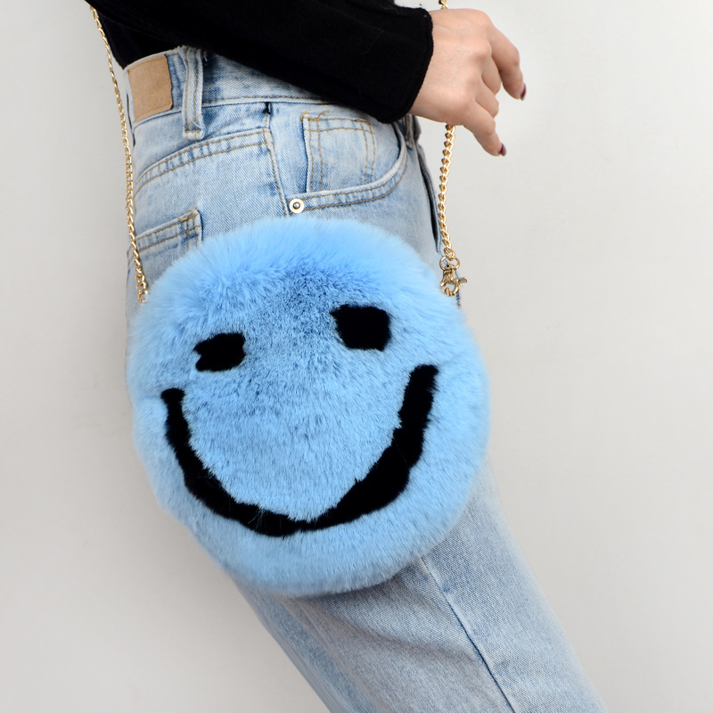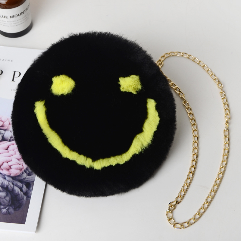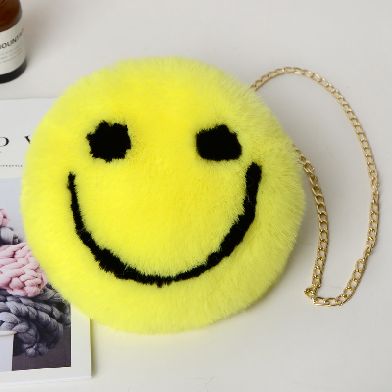 | nameOriginal | Expression small round bag 2019 new cartoon fashion smiley face women's bag cute mini plush shoulder messenger bag wholesale |