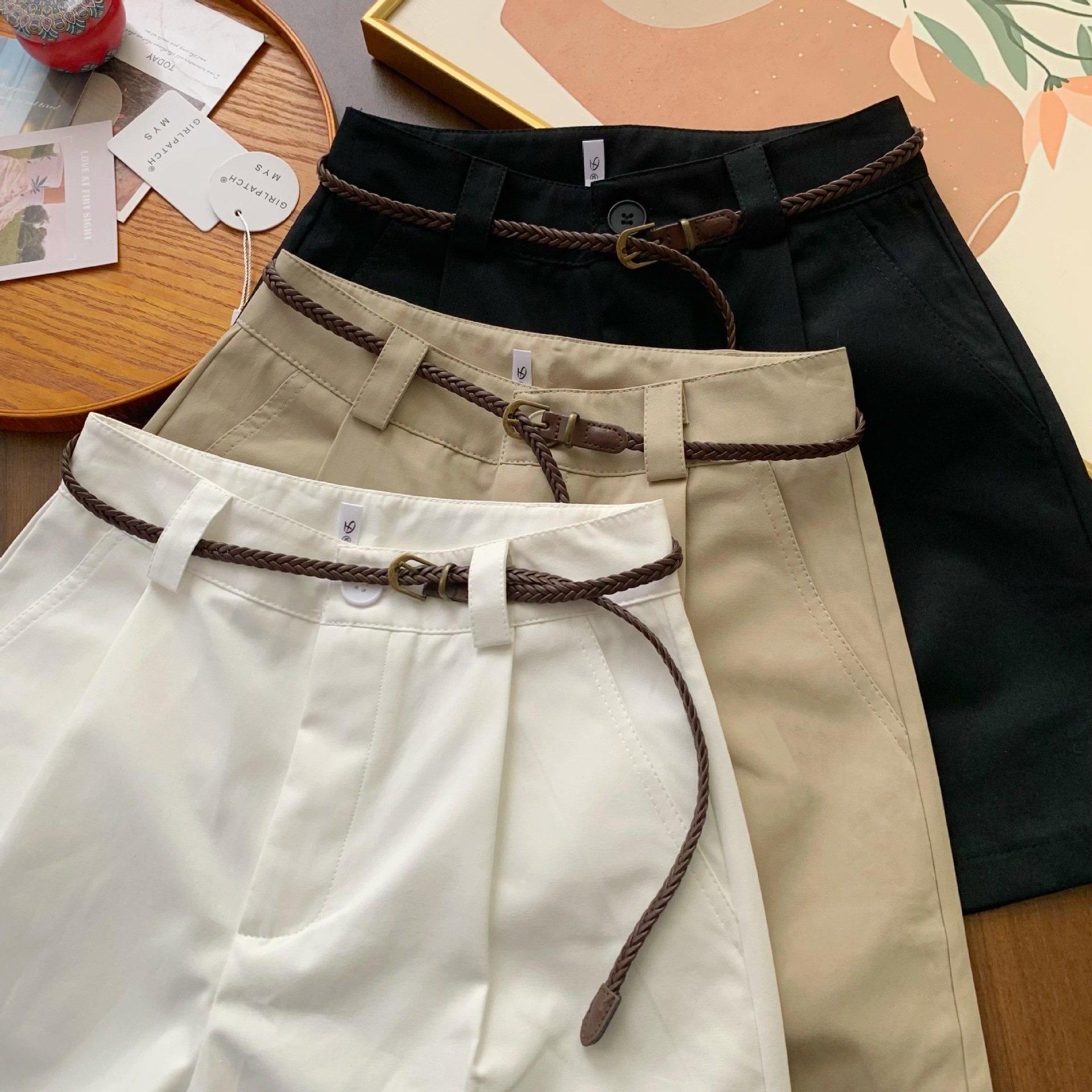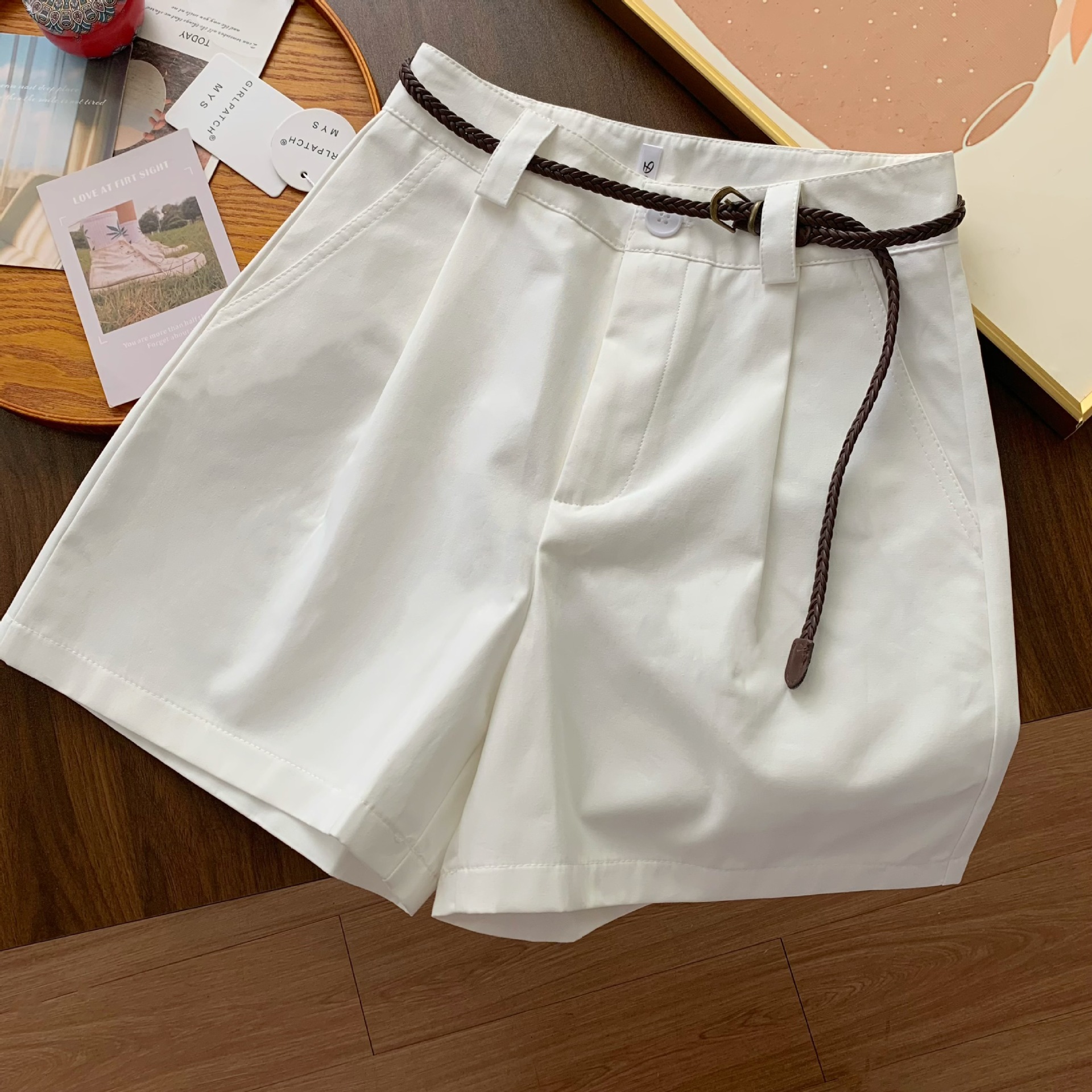 | nameOriginal | Exquisite and Ripple Shaggy Casual Shorts A- shaped Wide-leg Five-point Pants Women's Summer Loose White Cotton Thin Work Pants |