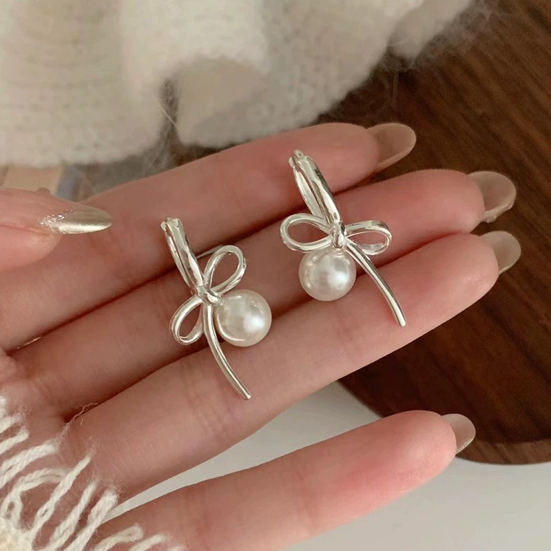 | nameOriginal | Exquisite bow pearl earrings for women, gentle, luxurious and elegant S925 silver needle earrings, niche fashionable and versatile earrings  |