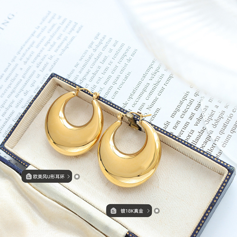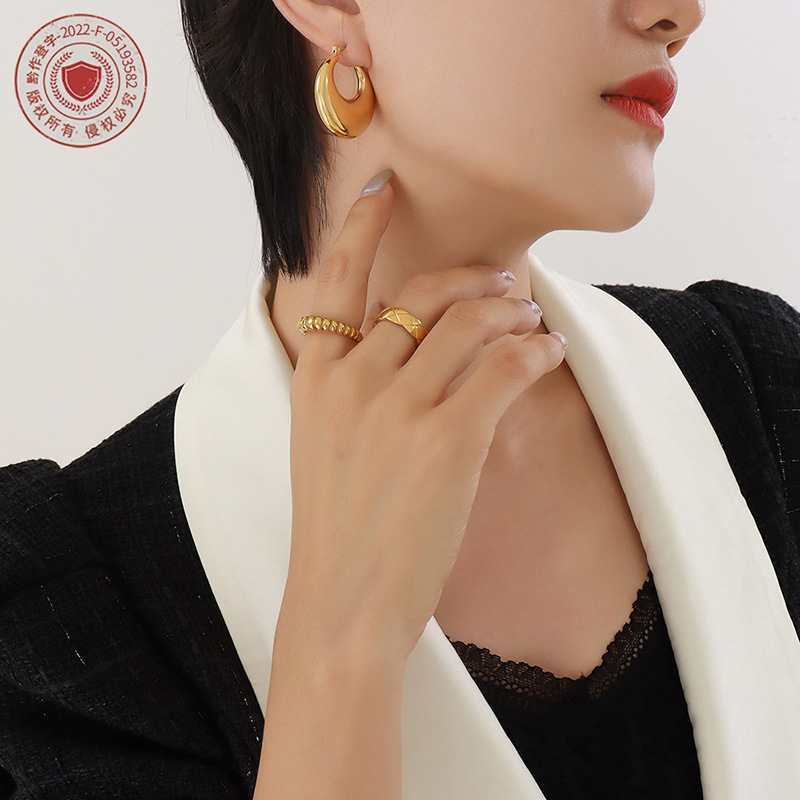 | nameOriginal | Exquisite elegant plain ring ear buckle glossy ear ring 2022 European and American style new titanium steel gold-plated personalized high-grade earrings |