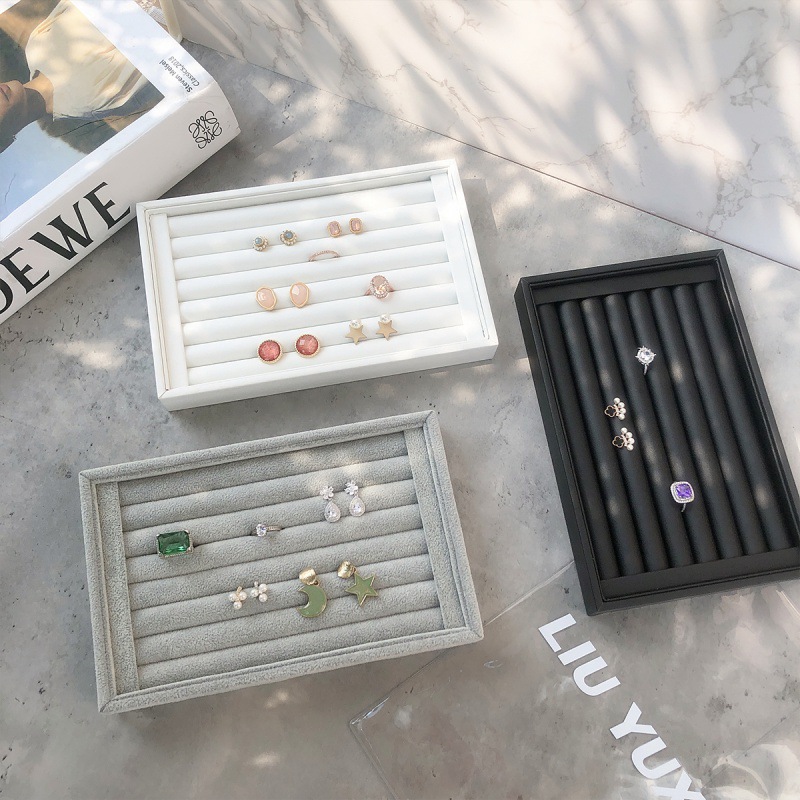| nameOriginal | Exquisite flannel ring plate rice white PU jewelry earrings storage props small size desktop stall jewelry display holder |