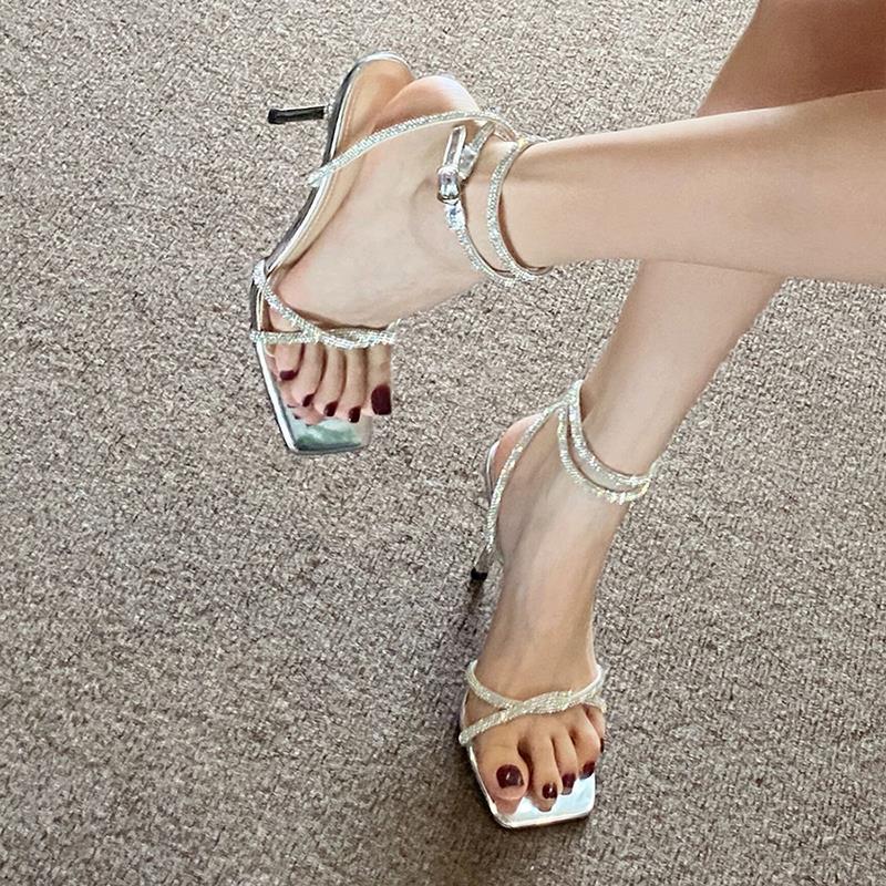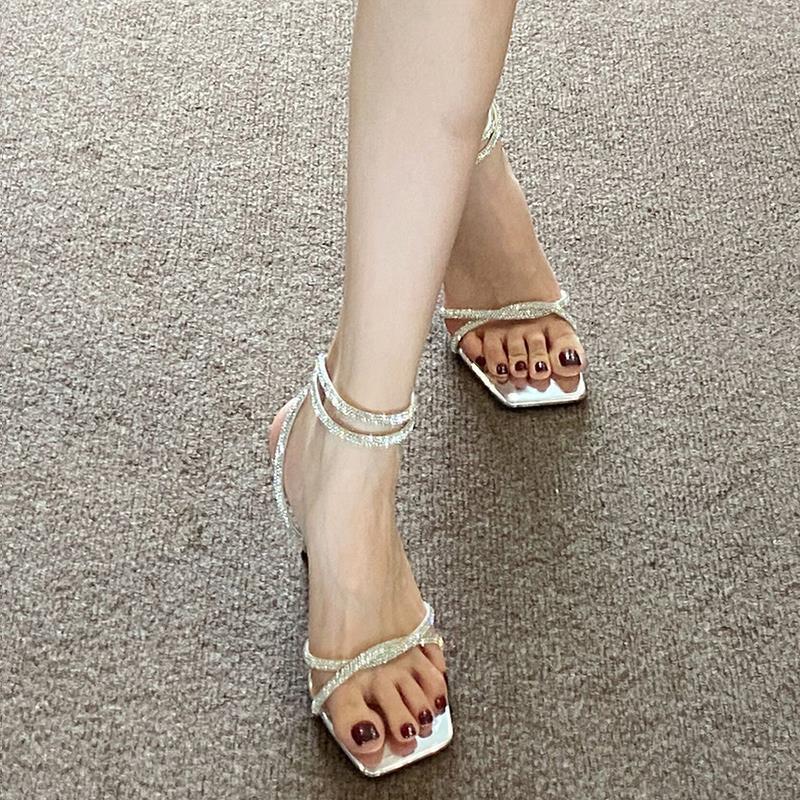 Exquisite girl ~ with skirt fashion sandals girls 2024 new French style with square stiletto heel high heels