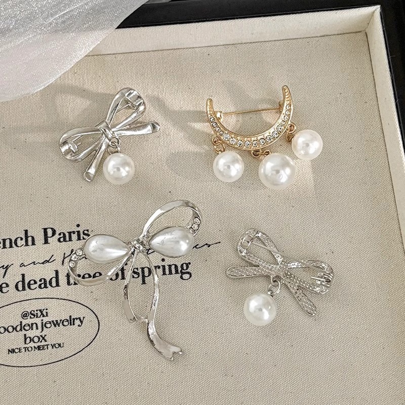 | nameOriginal | Exquisite High-end Pearl Bow Brooch Clothes Collar Anti-light Artifact Corsage Button Fixed Hidden Buckle Pin |