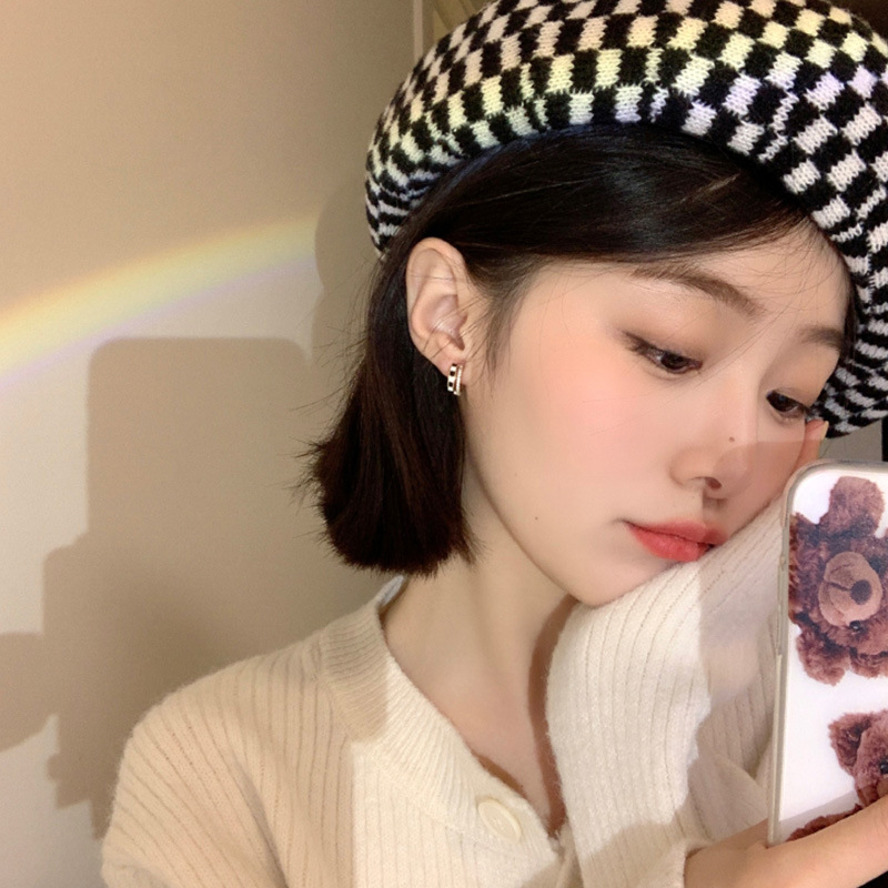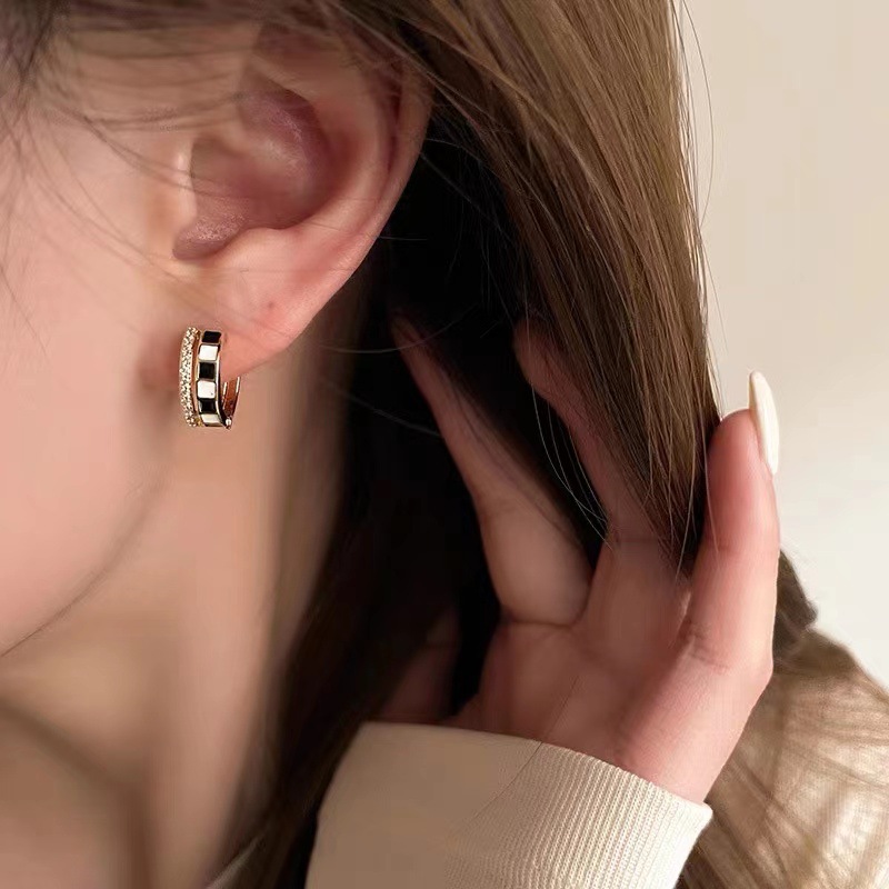 | nameOriginal | Exquisite Korean style black and white checkerboard micro inlay small ear ring 2023 new fashion and delicate earrings niche design ear buckle |