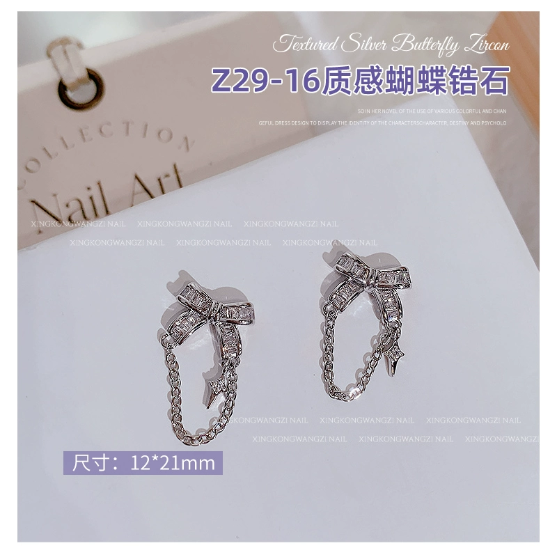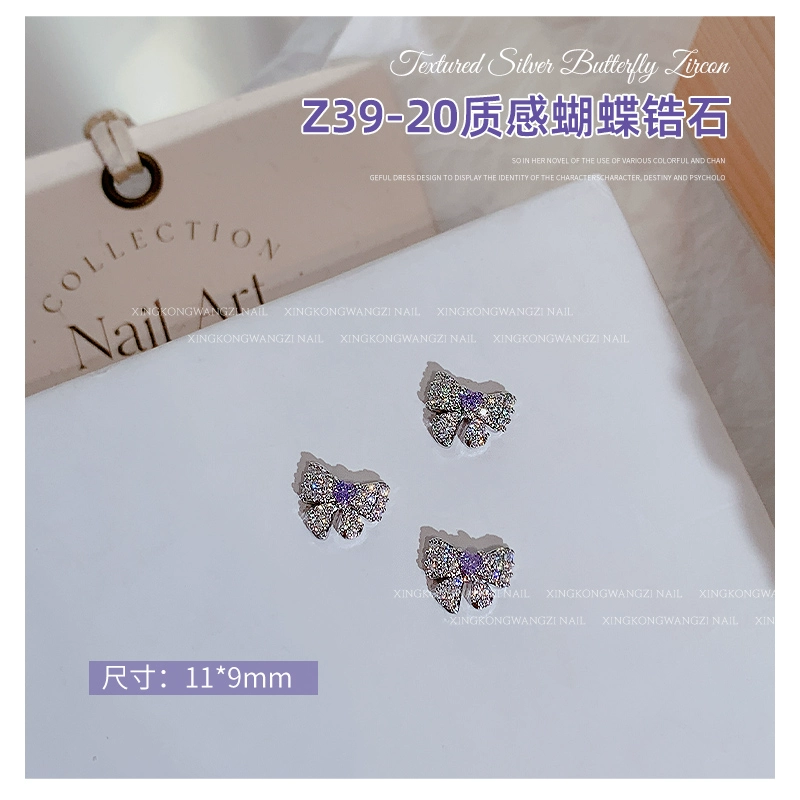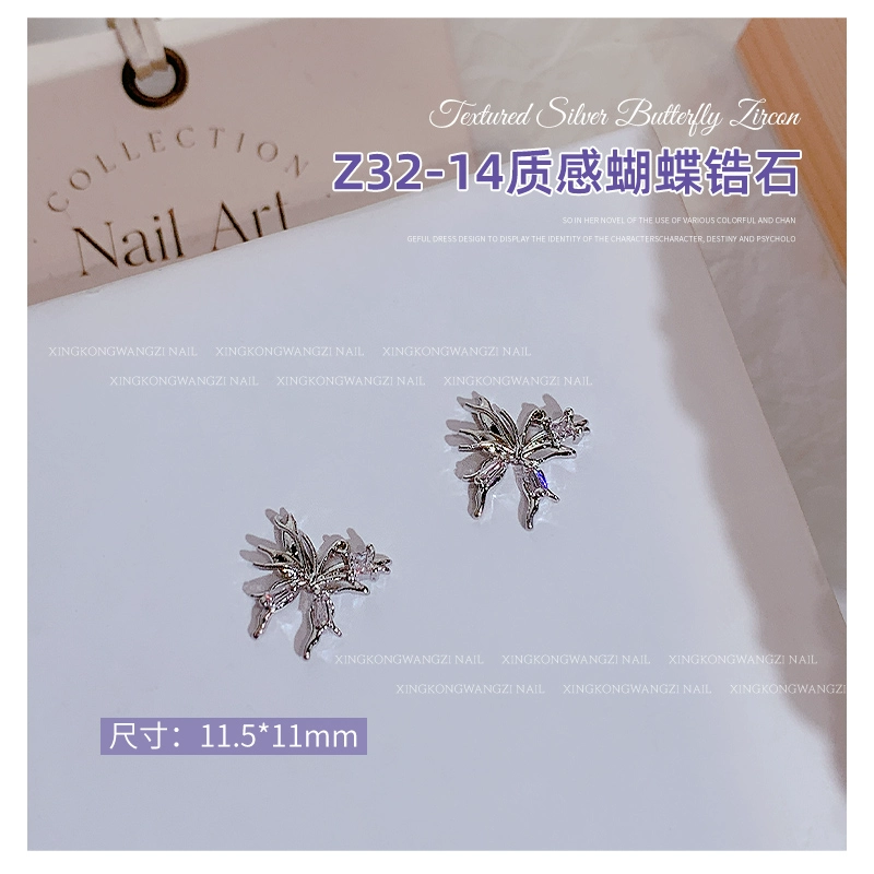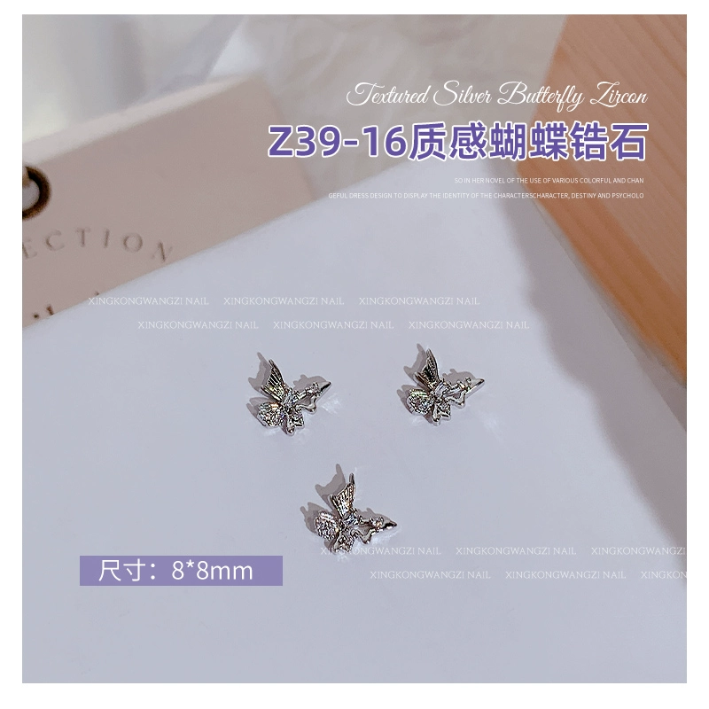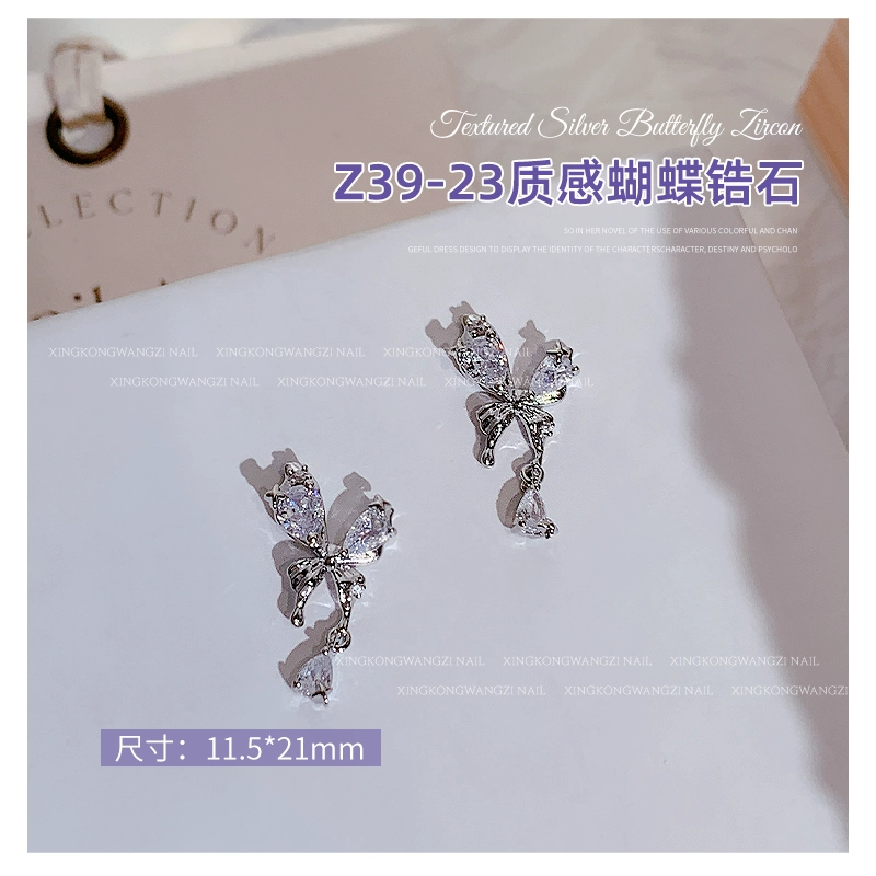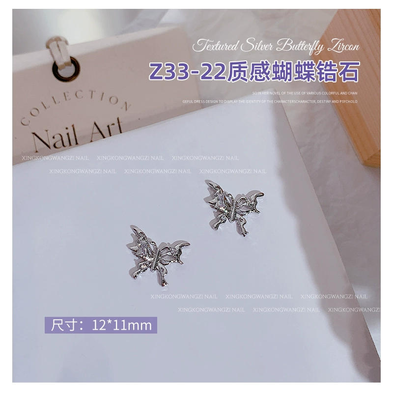 | nameOriginal | Exquisite manicure silver butterfly zircon 2024 hot style light luxury full diamond three-dimensional butterfly chain nail decoration |