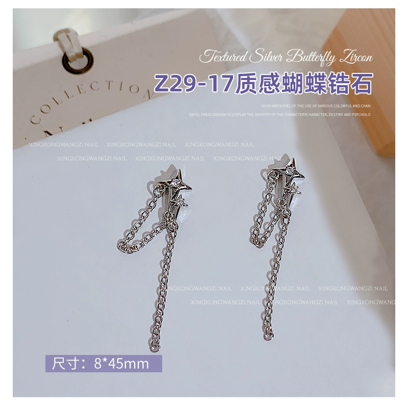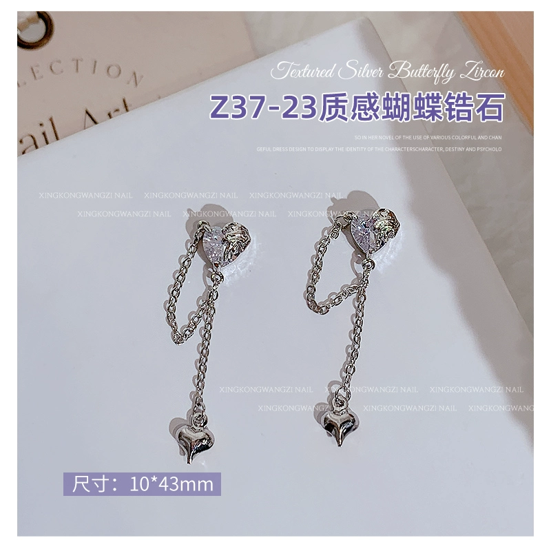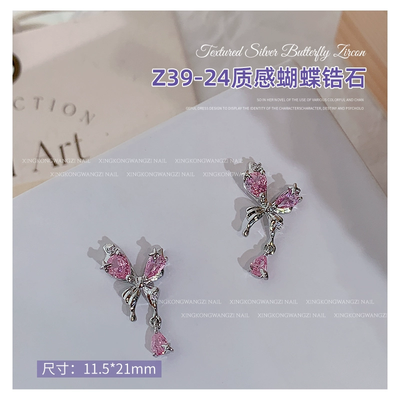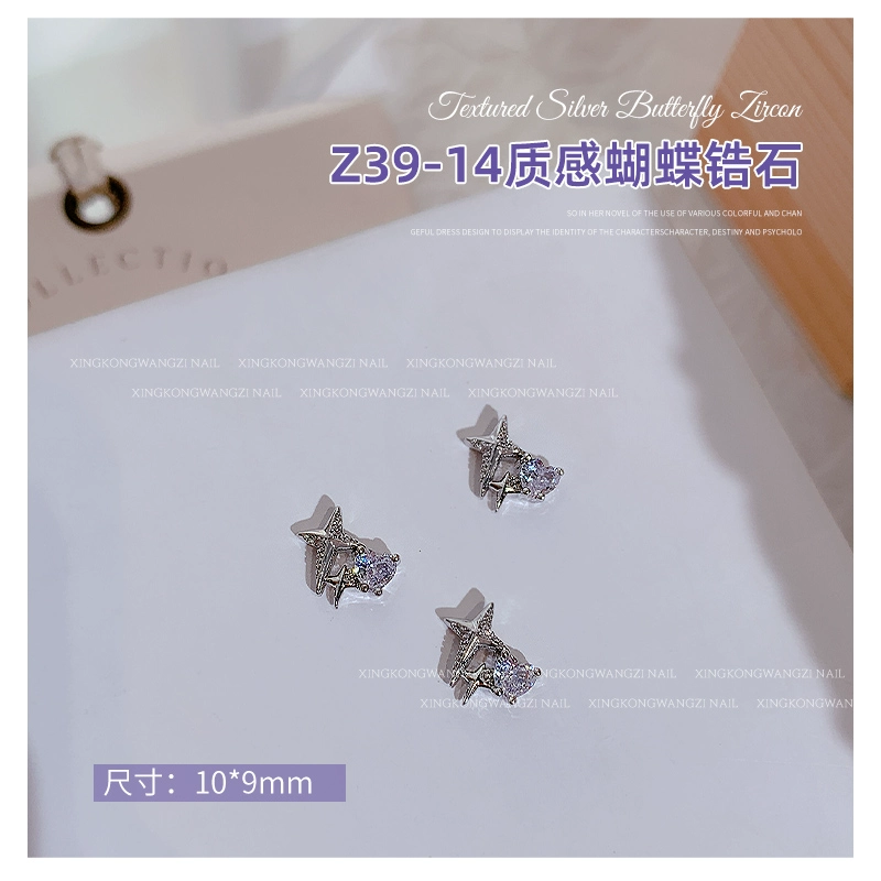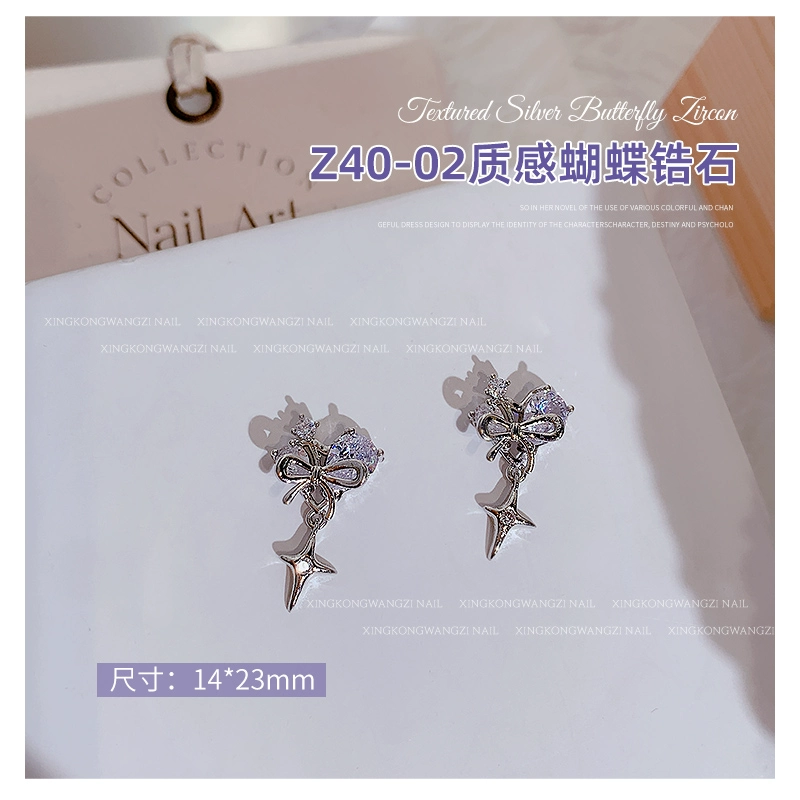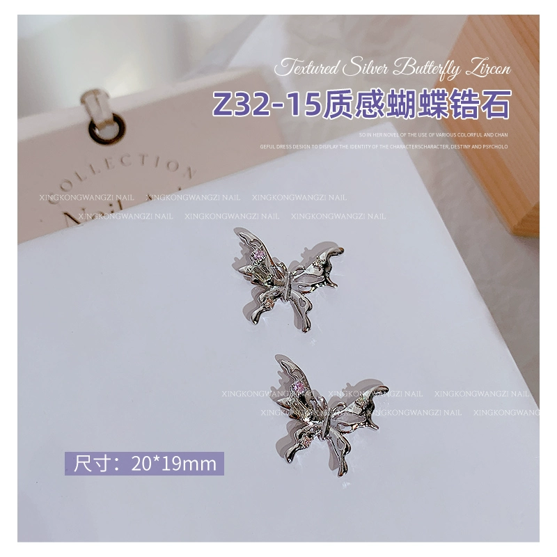 | nameOriginal | Exquisite manicure silver butterfly zircon 2024 hot style light luxury full diamond three-dimensional butterfly chain nail decoration |
