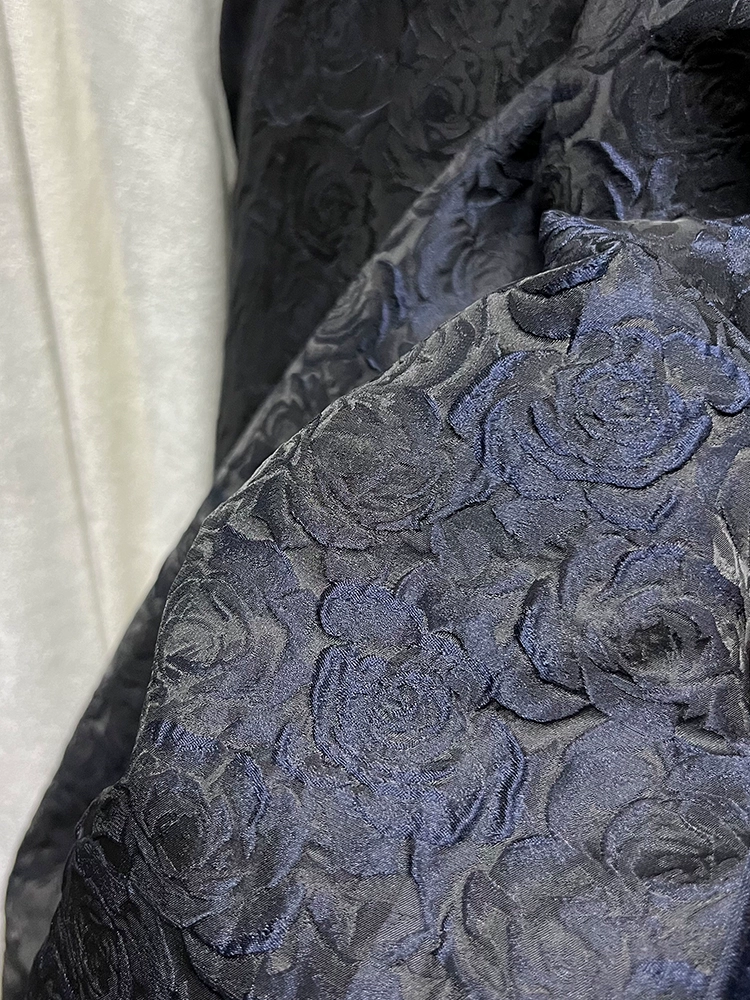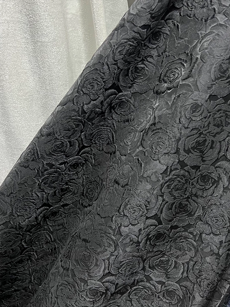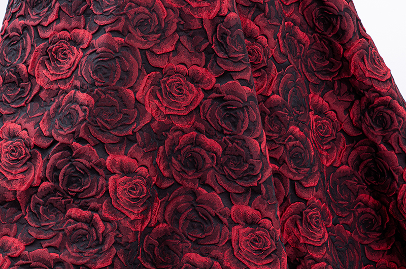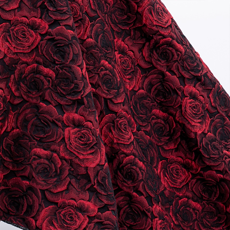 Exquisite three-dimensional oil painting style, deep burgundy rose embossed jacquard fabric, umbrella skirt, cheongsam and Hanfu fabric